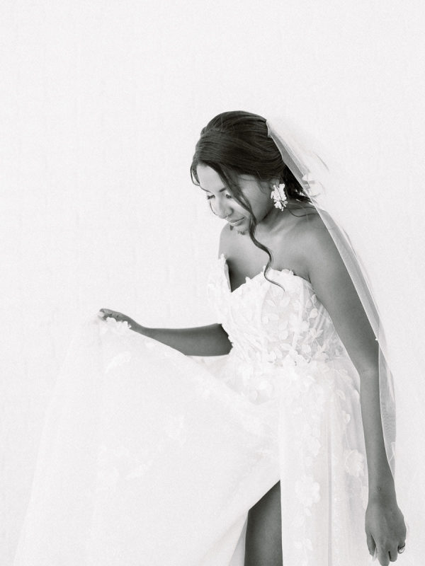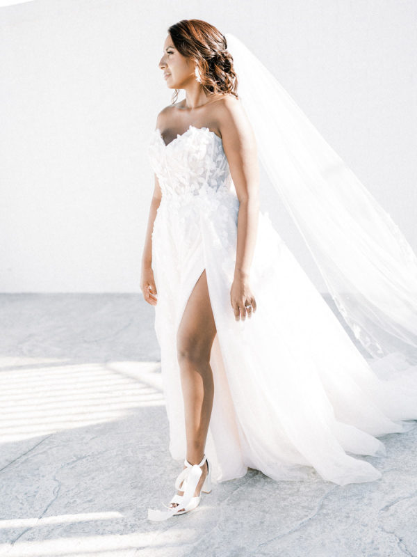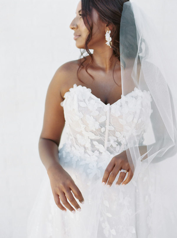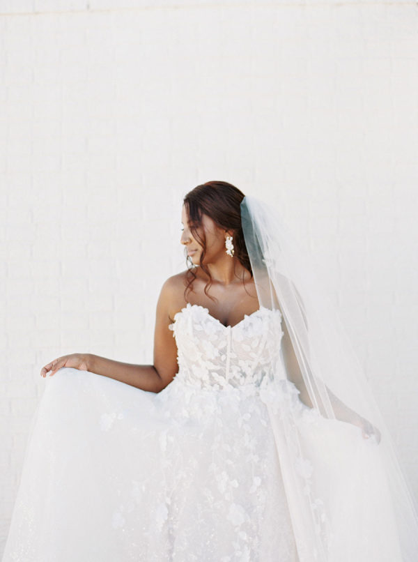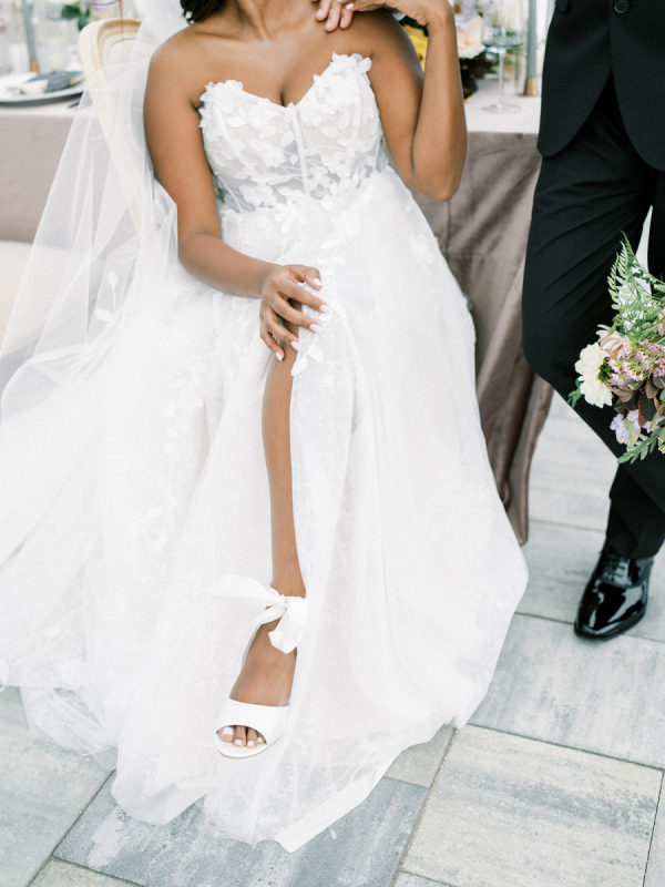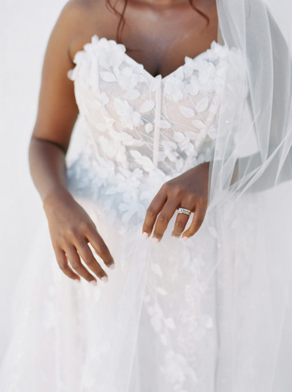 [field title=”Wedding Gown”]The textured florals in the wedding gown echoed the beautiful texture of the floral design. Keeping a touch of whimsical romance in the design was important to us, and that came out in the dress![/field]