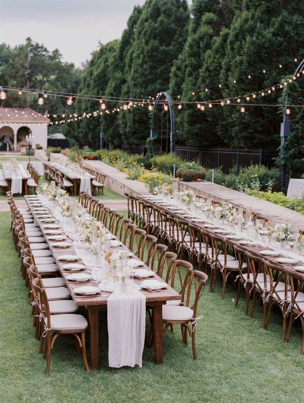 Kelsey and Chase had an Italian-inspired wedding at the Philbrook Museum in Tulsa, Oklahoma. The wedding was romantic, whimsical, and soft. Their wedding was intended to be alfresco with an all-outdoor ceremony and reception, but as for nature, there was another plan! It rained right before the ceremony, and they had a rainy romantic ceremony, and everything else moved inside. It was so much fun.