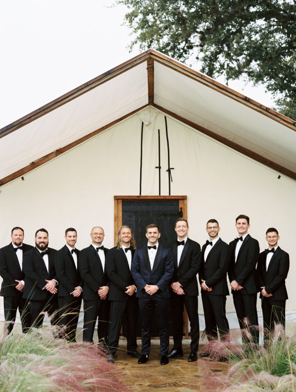This joyful tented wedding in the Texas Hill Country featured a rich fall color palette full of texture and warmth. While the bride and groom weren’t tied to any design specifics when starting the planning process, they knew they wanted it to have a garden feel and for florals to be at the forefront of their design. Correlating colors were tied in through the mismatched bridesmaid’s dress and linens, and their gallery wall-styled seating chart. They loved their venue, Windemere Farms, and didn’t want to do too much to take away from its natural beauty.