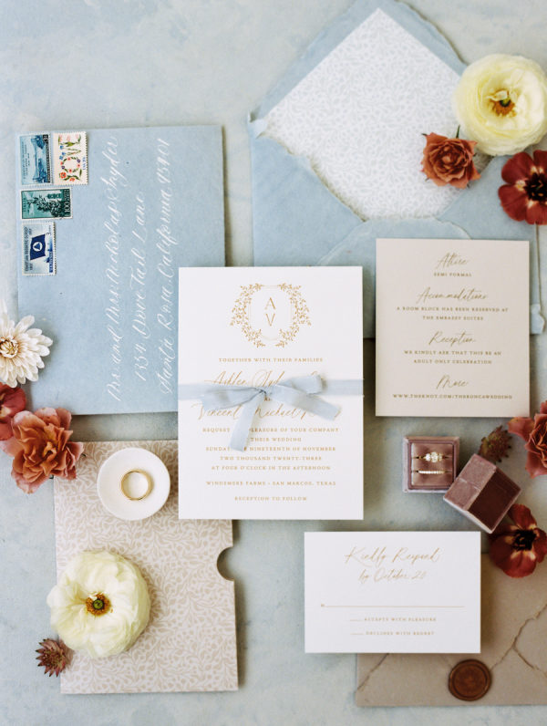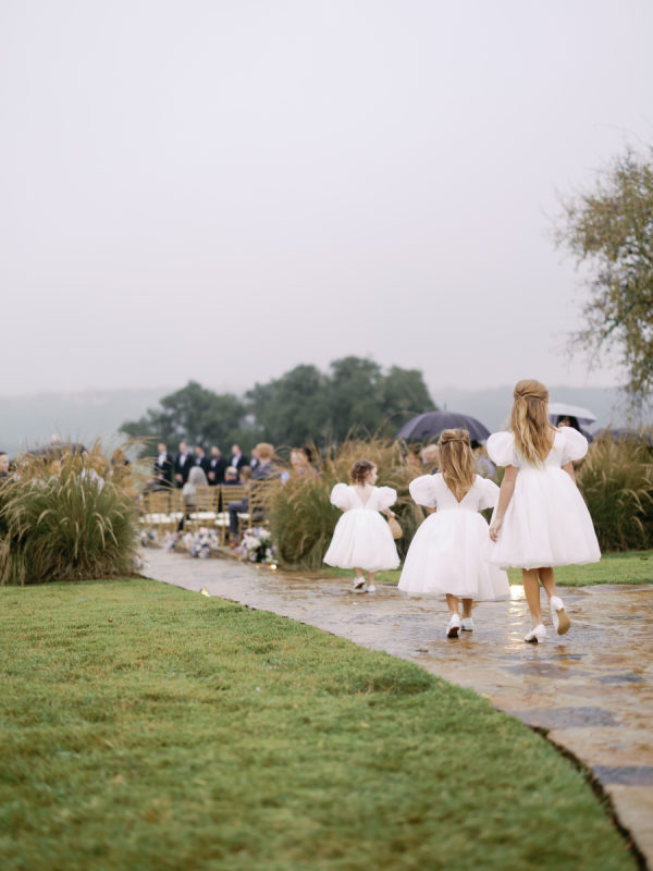 From the bride: The biggest special detail was that our day was so rainy and not ideal weather. But as soon as Vinnie and I had our first look, we both immediately told each other, “We are getting married in the rain and it’s going to be amazing.” I love that we chose to embrace the weather of the day because I cannot imagine our day any other way. We are so thankful for everyone who gladly sat in the rain/mist and celebrated alongside us. From the planner: The weather was certainly a curveball, but one that the couple, their guests, and their vendor team embraced wholeheartedly. We love that Ashlen & Vinnie didn’t let it detract from their day, but instead leaned in. The result was like something out of a Nicholas Sparks movie, and it made for a memory that no one will forget!