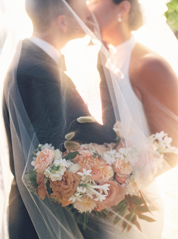 The bride opted for a stunning high-neck gown for her ceremony and reception dinner. For the party, she added a chic sheer overlay shawl to give it some after-party fun!