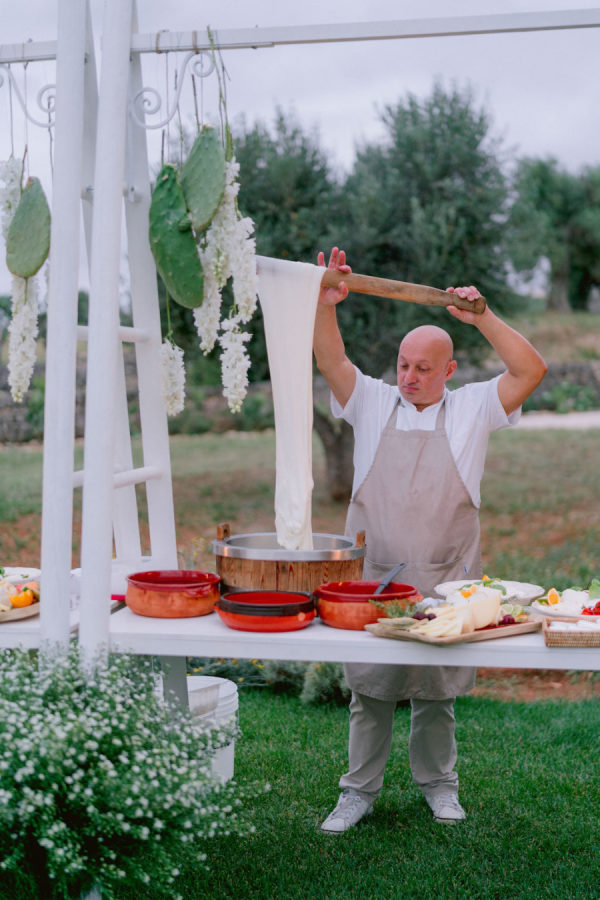 The wedding menu was a true celebration of local Apulian cuisine, designed to highlight the region’s finest ingredients with a focus on lightness and freshness, perfect for a summer evening. Each dish was crafted with meticulous attention to detail, offering a harmonious blend of traditional flavors and refined presentation. The result was a culinary journey that was both indulgent and elegant, leaving guests delighted.