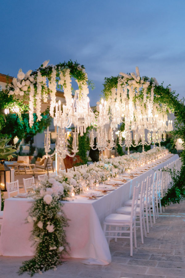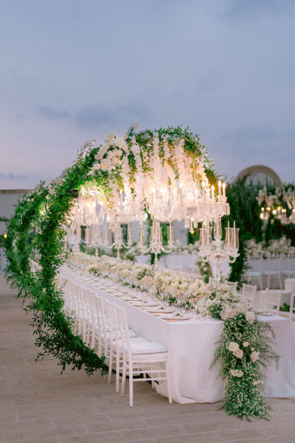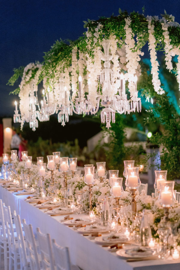 [field title=”Florals & Decor”]The atmosphere is characterized by exclusivity and sophistication, with opulent details that evoke grandeur and luxury. Cascading floral installations, shimmering chandeliers, and finely crafted table settings create a breathtakingly lavish environment.