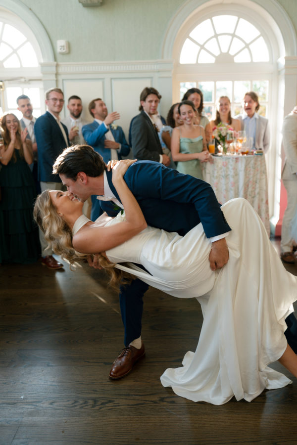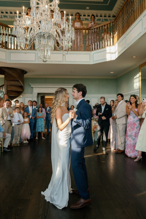 [field title=”Special Detail #1″]To close out cocktail hour, guests were invited into the Wedgewood Ballroom to witness a moment of magic, the bride and groom’s showstopping first dance. Friends and family lined the room’s perimeter and watched from the loft above, creating a full-circle view as the newlyweds twirled across the floor to cheers and applause. It was the kind of grand entrance that felt straight out of a movie and set the tone for an unforgettable evening ahead.[/field]