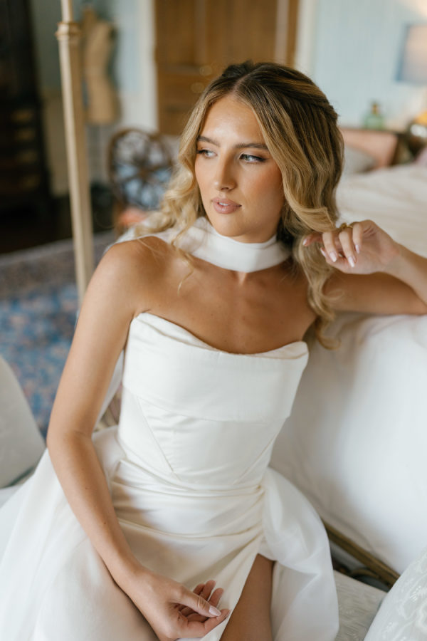 As a lifetime admirer of fashion, I was so excited to decide what to wear. Through so much research and a small handful of appointments, I curated 4 distinct looks through two dresses. My ceremony ensemble was something I will forever appreciate. The soft silk corset gown I wore was selected near my hometown in Maryland during an impromptu bridal appointment (my first ever) with my mom and MOH by my side. Through alterations, I completely reimagined the bodice to create the classic and refined lines I was looking for. I paired the Martina Liana dress with a whimsical and romantic tulle overskirt and veil, both Chosen by Khya—, nd lastly a complementary neck scarf by A La Robe. The skirt, veil, and scarf were the perfect finishing touches, all of which I found in a local Tampa bridal boutique, which is the city in which AJ and I live and work. My second dress was a full Grace Loves Lace moment. A strapless satin mini dress made better with a lace sheath underskirt and matching sleeves. I loved how fluid my looks were and how easy it was to completely change the vibe and feel of what I was wearing—without ever having to leave the room.