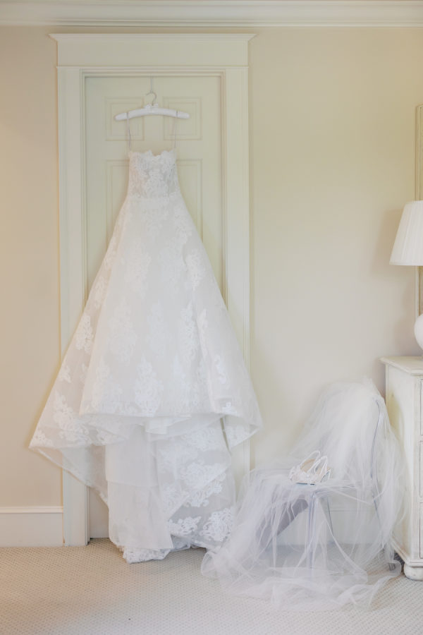 The bride’s ceremony gown, from Monique Lhuillier, was romantic and feminine, with floral accents throughout. The bride changed dresses for the reception to a fun mini dress to dance the night away with friends and family and to perform a special song with the groom on stage!