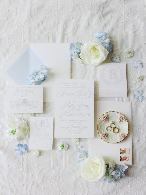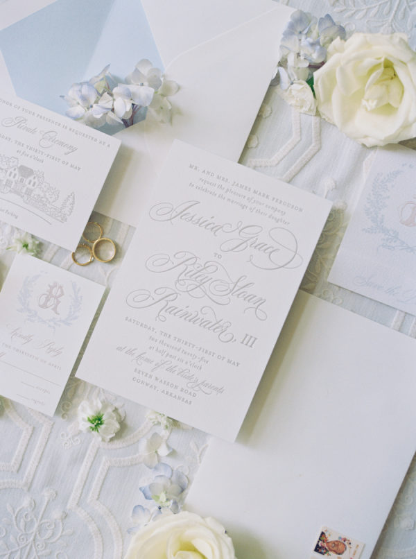 This classic, royal-inspired and French Country aesthetic wedding at the Bride’s family home in Arkansas was intimate, fashion-forward, and intentional with personal detail throughout. With beautiful florals, soft linens, and romantic stationery, this wedding was the perfect way to celebrate love for Jessica and Riley at their private estate in Arkansas. The most noteworthy detail was the barn hand-built by the bride’s dad for the reception.