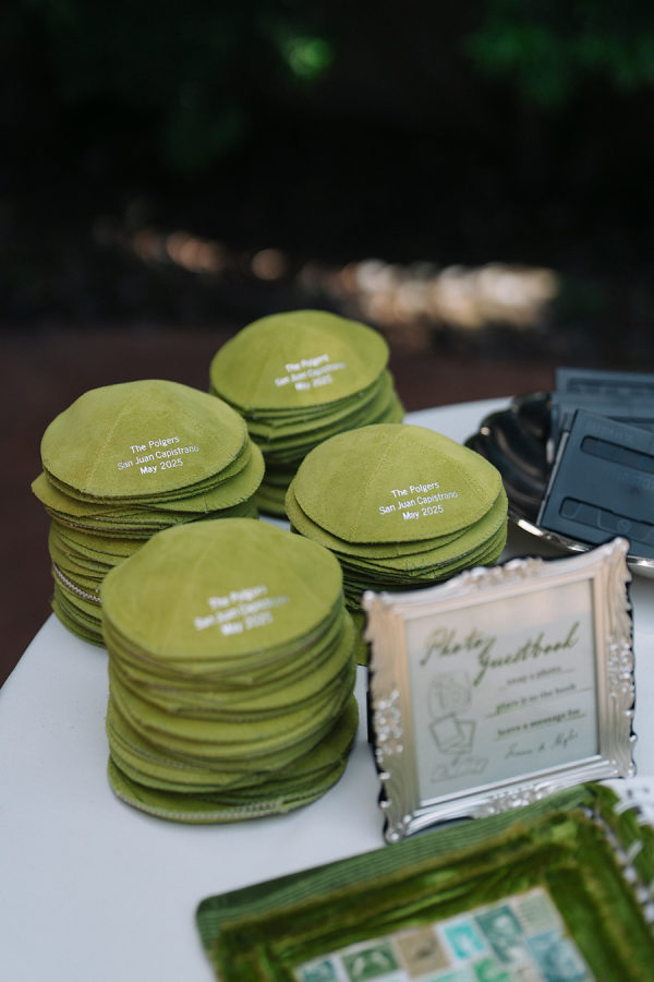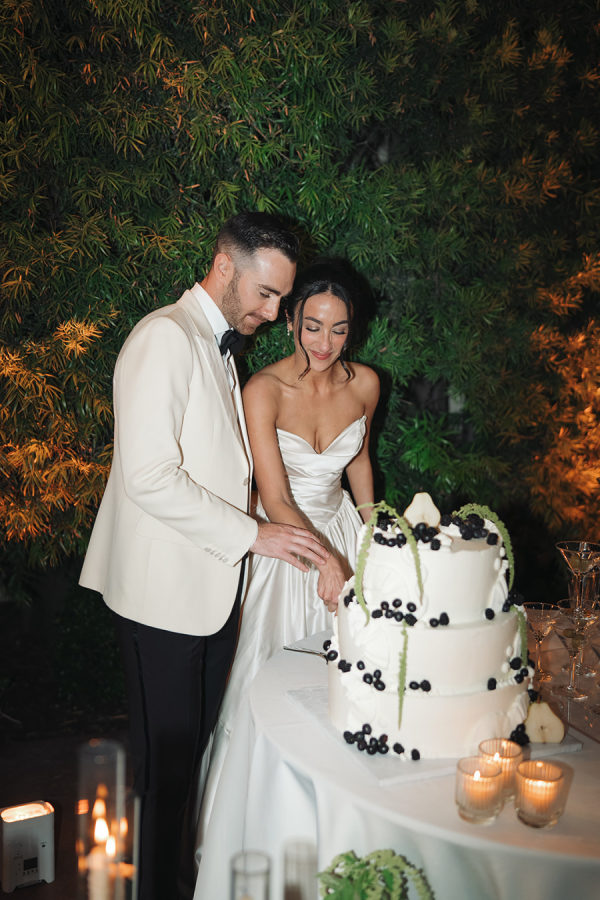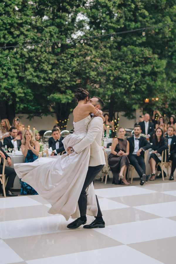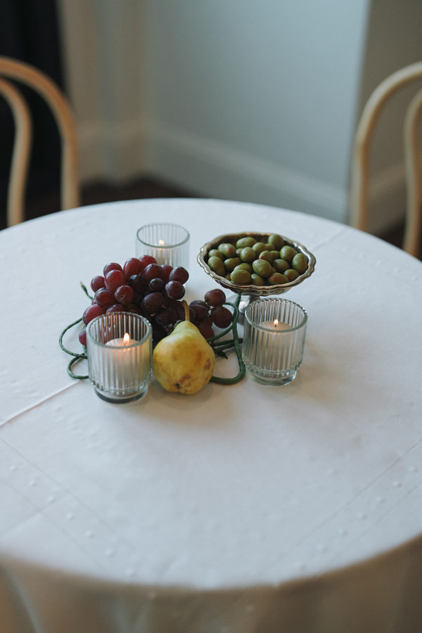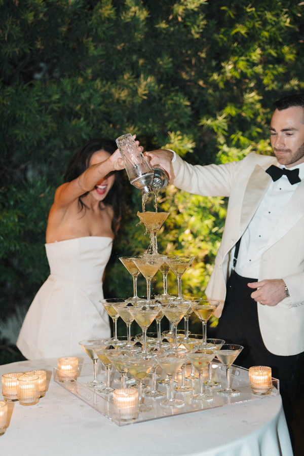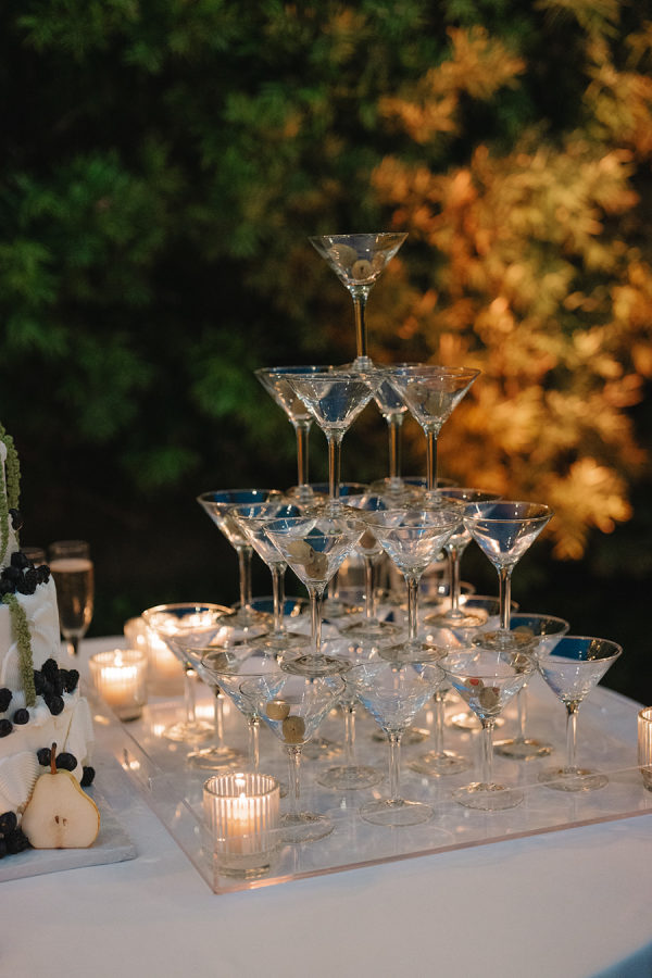 On each cocktail table, we placed vintage silver bowls of olive-shaped chocolates from Sugarfina. Guests also enjoyed tray passed stuffed artichoke hearts, chimichuri lamb chops, tuna tartare, lobster rolls & and a charcuterie and cheese display. For dinner, the bride and groom opted for roasted tri-tip, spinach and ricotta stuffed chicken, creamy wild mushroom risotto, and charred broccolini.