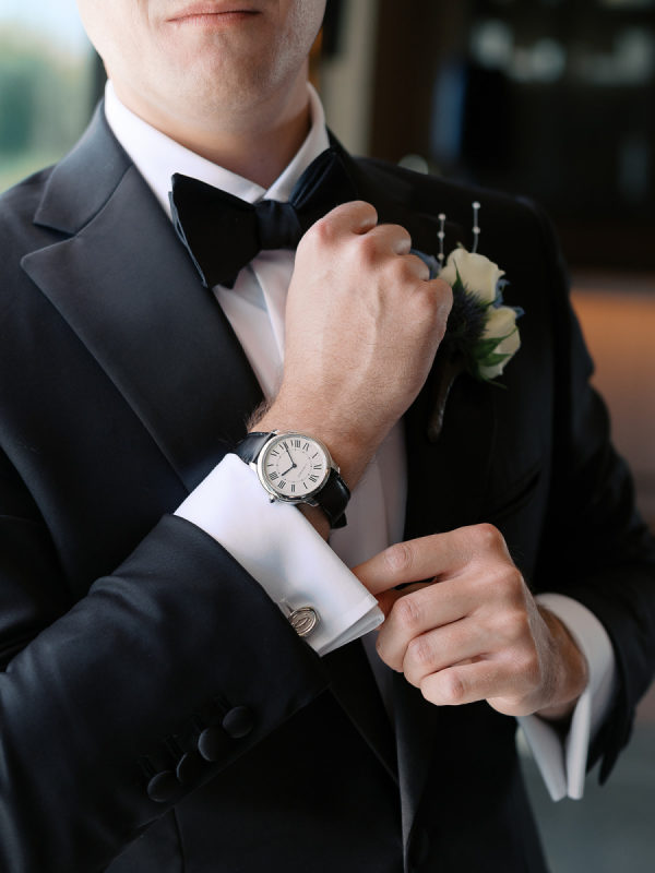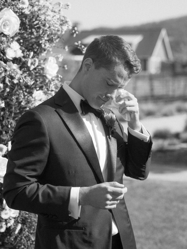 [field title=”Groomsman Attire”]Ben and his groomsmen sported classic black tuxedos from Hive and Colony. Ben’s tux was custom made and included a special liner of wine bottles as a nod to their wedding location in Napa Valley![/field]