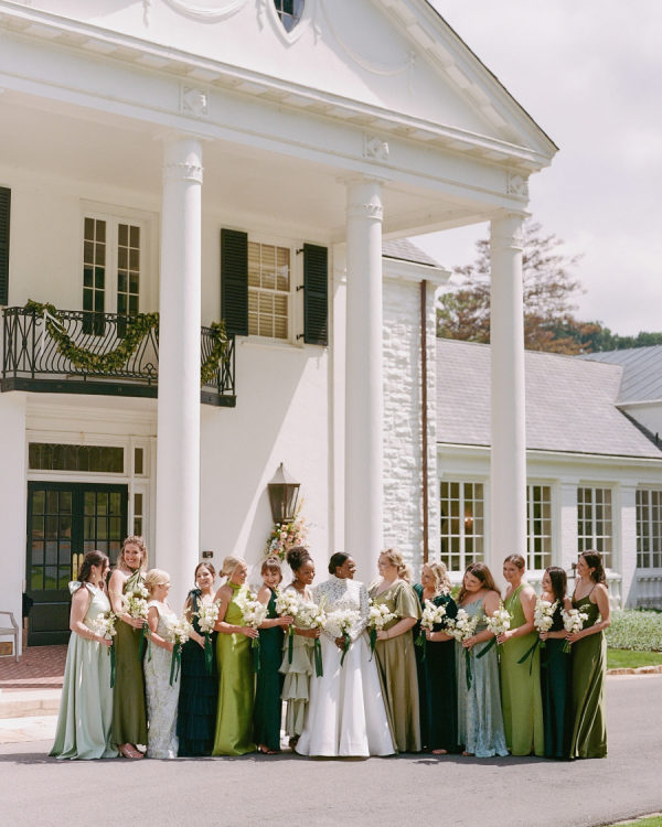 The bridesmaids each wore a gown of their choosing! It was important to Symone that everyone felt comfortable, beautiful, and didn’t break the bank for a dress they won’t wear again. The only requirement was that it had to be floor-length and a shade of green!