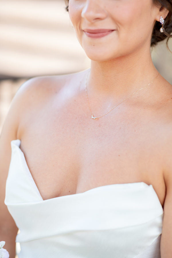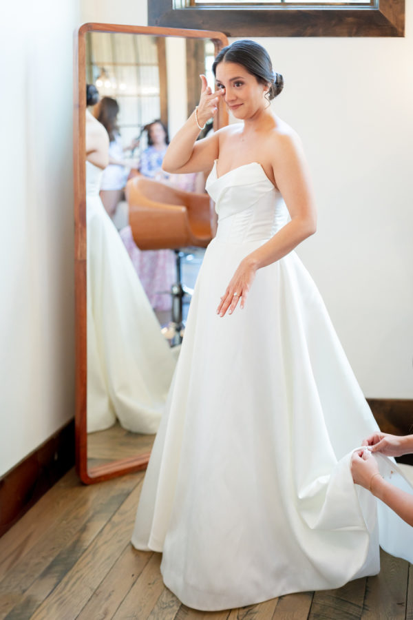 [field title=”Wedding Gown”]I found my dress at Little White Dress. It’s a gorgeous A line from Enaura bridal. I fell in love with it the minute I tried it on. I just felt so elegant and special for the momentous occasion. I wanted a dress that I could look back on as timeless with a touch of luxury, and this dress definitely made me feel comfortable in my own skin. [/field]