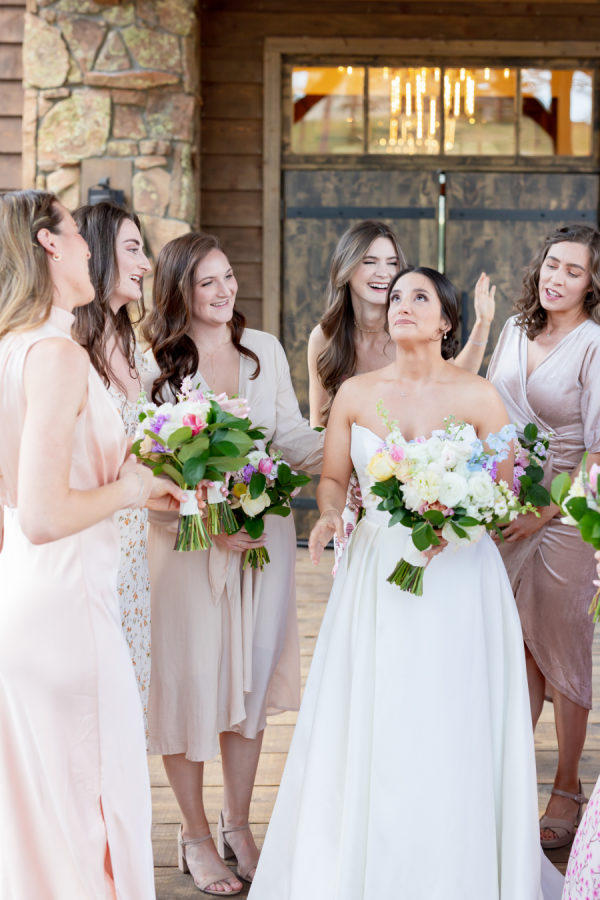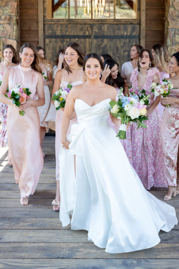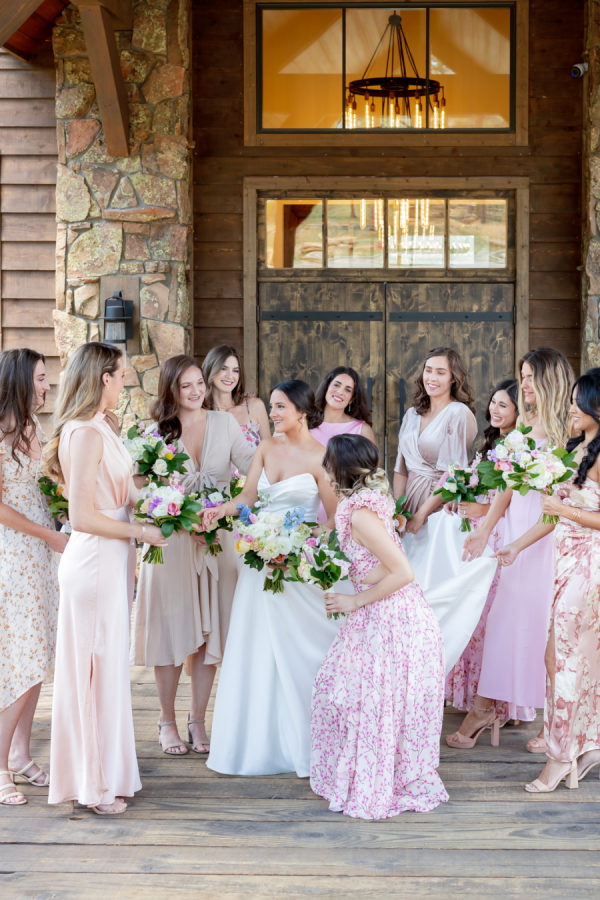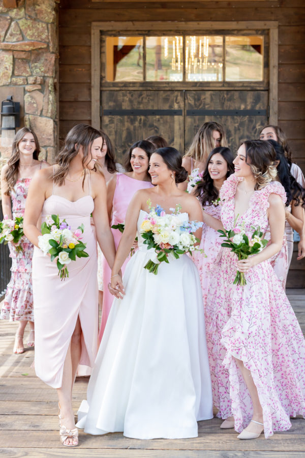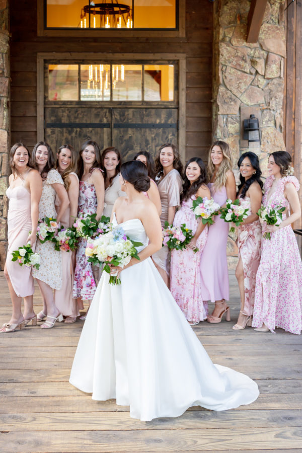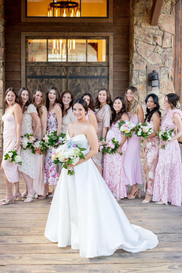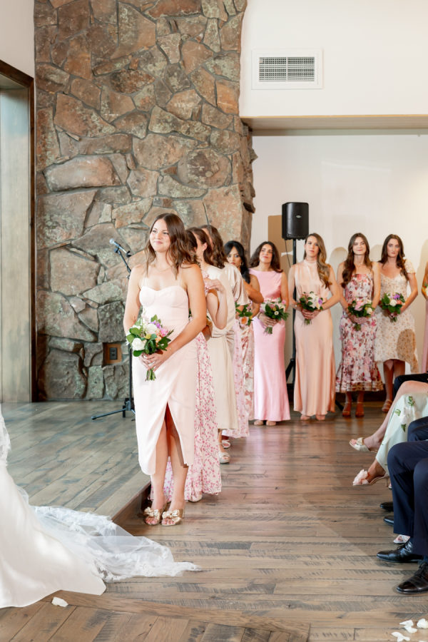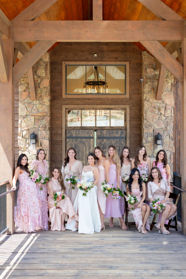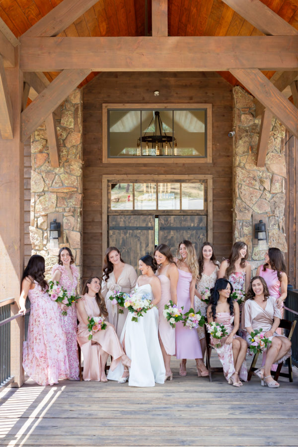 [field title=”Bridesmaid Dresses”]I had 11 bridesmaids! I trusted them all to choose their own dresses. I did provide my bridesmaids with a mauve/champagne/pink color palette and they just nailed it. They all did an amazing job coordinating style and color. [/field]