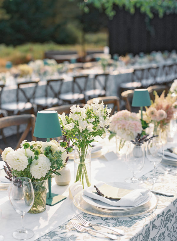 Our wedding palette focused on the natural shades of the island at this time of year, which are white, blue, a range of greens, and some soft pops of blush and lavender.