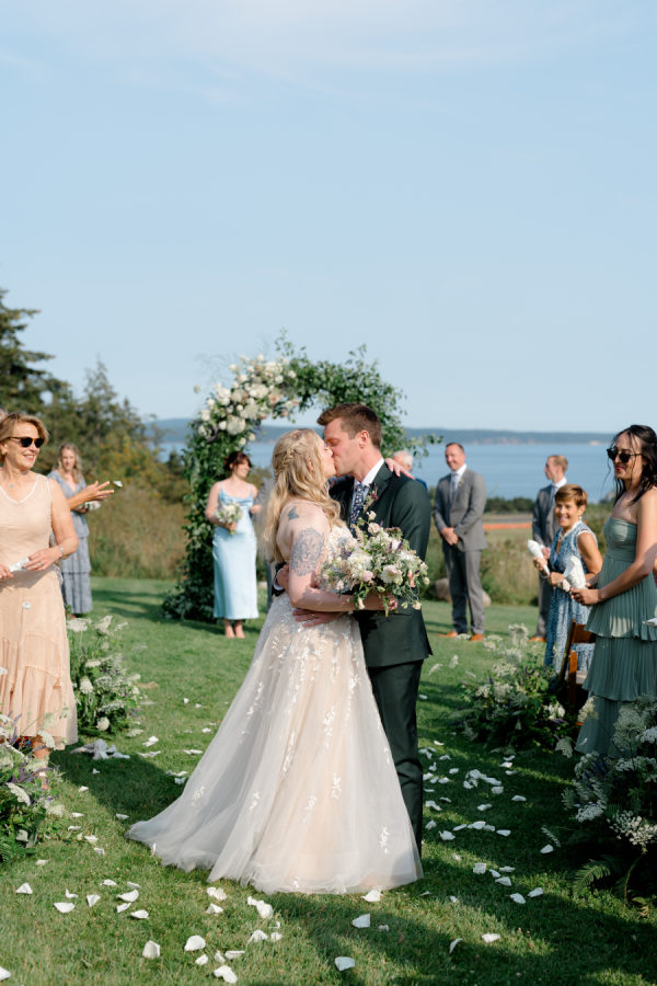 A Sustainable Coastal Wedding in White and Blue at Saltwater Farm Overlooking the Salish Sea