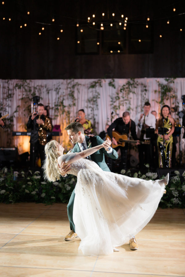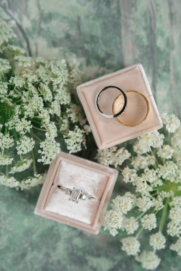 Adam’s goomsmen wore medium gray suits that complemented the groom’s forest green suit. Adam had a vision with his attire and was so happy to find the perfect fit from J.Hilburn and stylist Annette Dresser.
