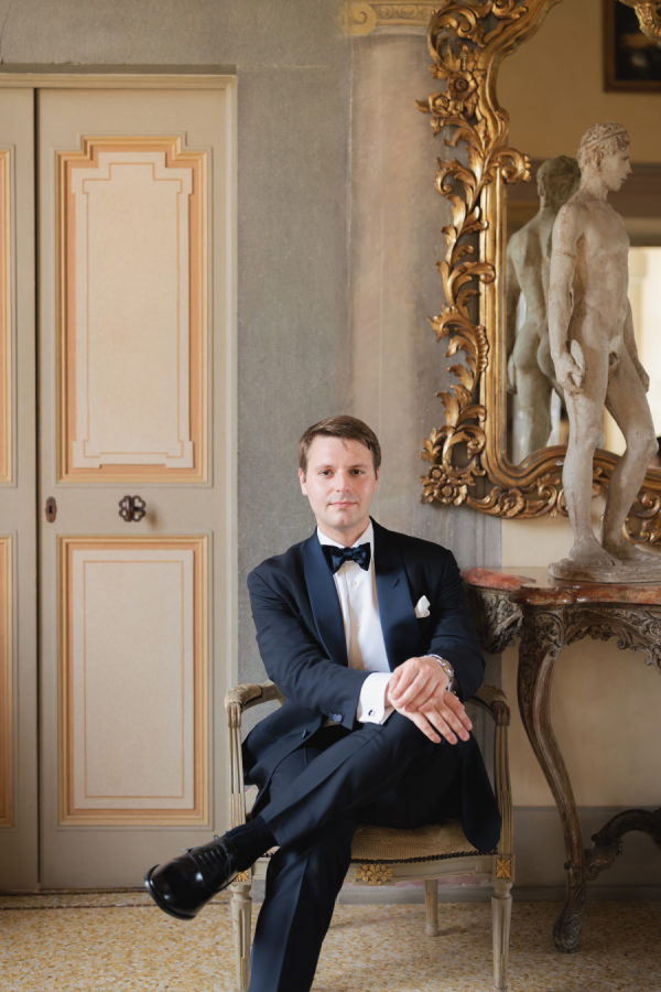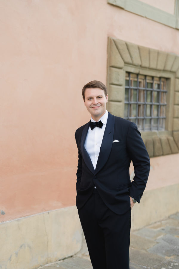 The Groom wore Ralph Lauren, Purple Label, to the welcome dinner and the wedding day.