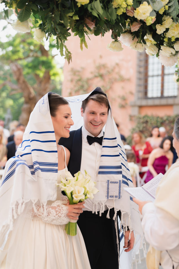 The ceremony brought not only beauty but also lighthearted, symbolic moments. During the traditional circling, Leticia kept stepping on her veil, and Allan’s tallit kept falling off — they had to help each other out mid-circle, laughing through the chaos. Their rabbi smiled and said, “The tallit is made for two people — it’s not stable when you’re apart.” It was the perfect metaphor: marriage is about supporting one another, even in the smallest, silliest moments.