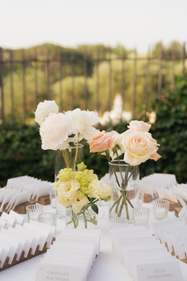 Romantic, classic, and timeless — these were the guiding words behind Leticia and Allan’s unforgettable wedding in the heart of Tuscany. The celebration took place at Villa Mangiacane, a breathtaking estate designed by Michelangelo over 500 years ago. With the rolling Tuscan hills as a backdrop and the golden Italian light pouring in, their vision came to life effortlessly. Inspired by the natural elegance of the countryside, they chose a refined palette of cream, white, and blush florals, paired with soft candlelight and thoughtful details that celebrated both intimacy and romance.