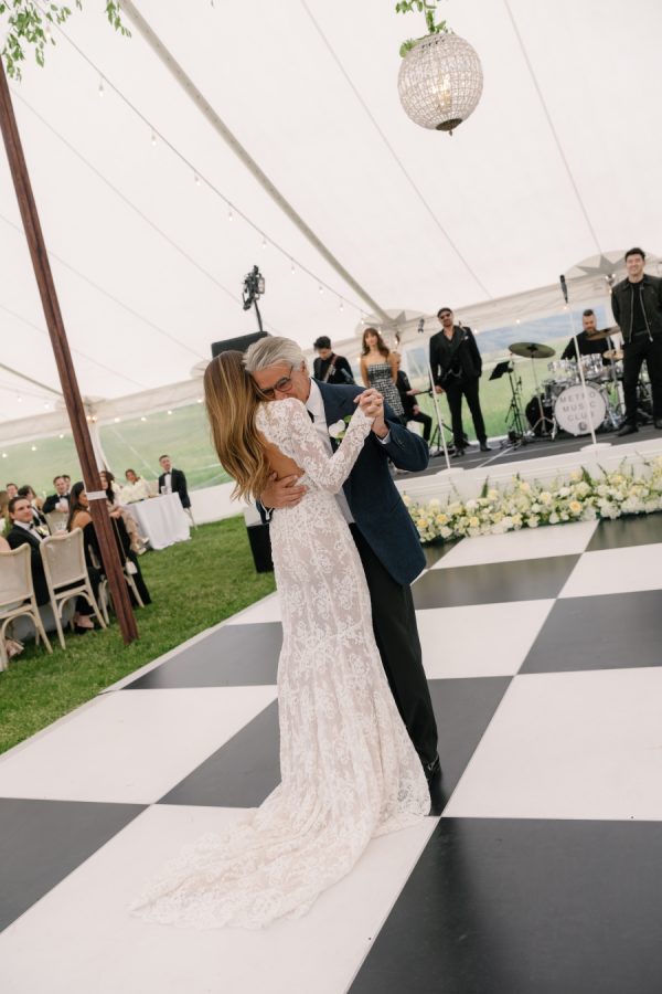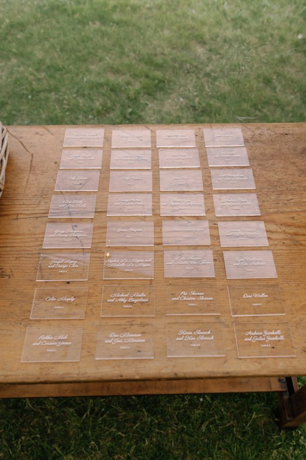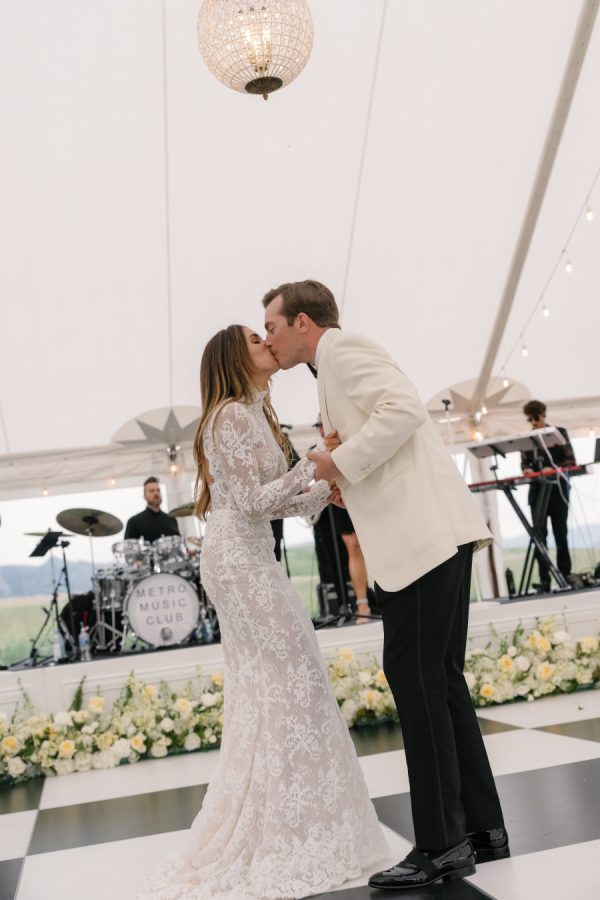 [field title=”Food & Drink”]The menu highlighted the best of land and sea with steak and trout as the centerpiece courses, accompanied by seasonal, elevated sides. Thoughtful pairings and family-style service fostered a warm, communal experience, perfectly complementing the wedding’s refined yet inviting atmosphere.[/field]