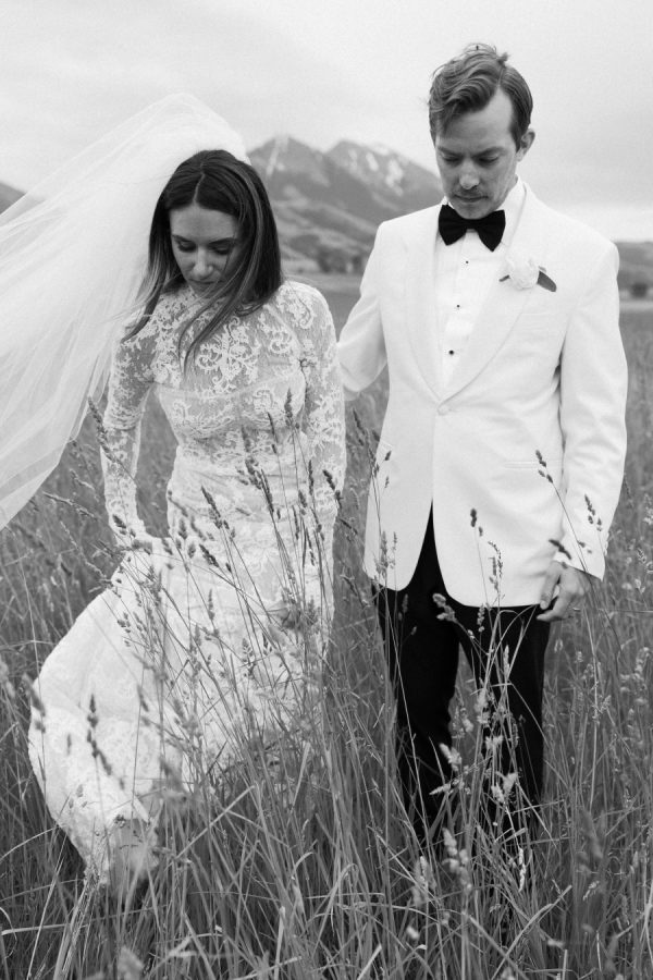 Event Planning: Forever West Weddings | Floral Design: Amanda Jewel Floral + Design | Wedding Dress: Dana Harel | Stationary: 92Sutton | Bride’s Shoes: Valentino | Band: Metro Music Club | Transportation: 406 Shuttle | After Party Sound & Lighting: Jereco Studios, Inc | Afterparty DJ: Twinsick | Beauty: Emily Young Artistry | Behind the Scenes: In This Moment | Ceremony Musicians: Still Waters String Quartet | Linens: BBJ La Tavola | Linens: Nuage Designs | Photobooth: Party People Montana | Photography & Videography: Ashley Teresa Photo | Rentals: Gallatin Event Rental | Rentals: Montana Party Rentals | Rentals: FilmLites | Rentals: Tailored And Tied | Venue & Catering: Sage Lodge | Wedding PR: Published Pretty