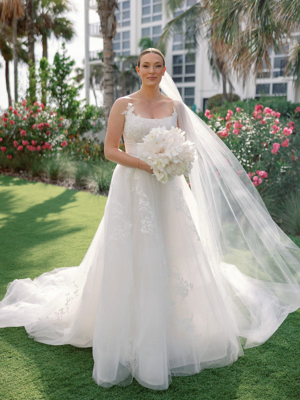 [field title=”Wedding Cake”]The St. Regis Longboat Key created a timeless confection that beautifully complemented the day’s refined aesthetic. The three-tiered white cake was adorned with cascading white orchids and creamy roses, reflecting the floral story woven throughout the celebration. Its simple and elegant design captured the essence of the weekend, combining classic charm with a touch of tropical romance.[/field]