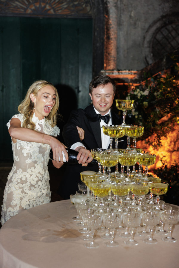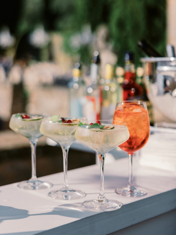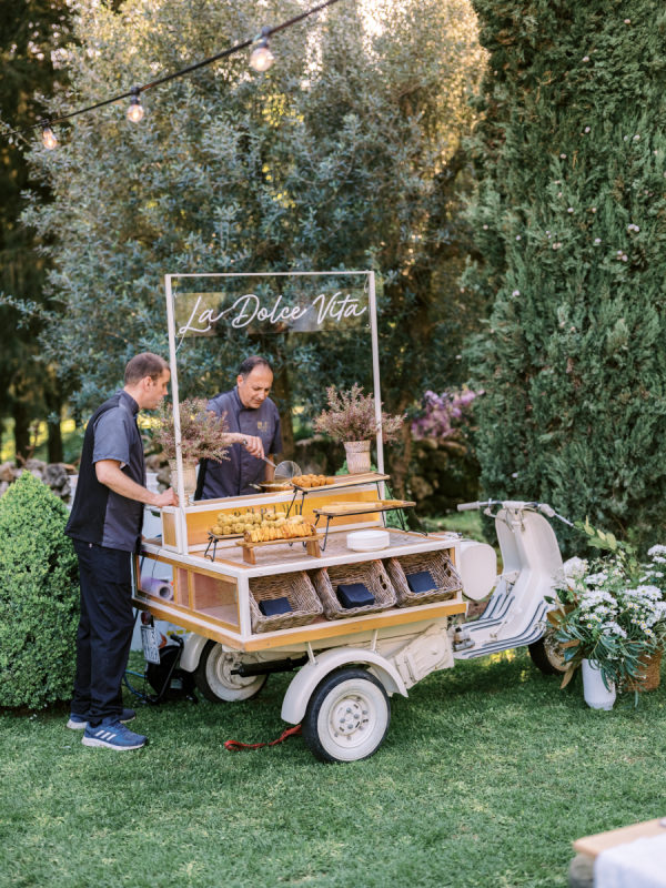 The food and beverage offerings featured Tuscan-inspired dishes paired with a must-have cocktail: the iconic Hugo. Served in elegant champagne glasses, garnished with fresh mint leaves and red berries, the drink added a chic and refreshing touch. Late into the evening, guests indulged in a playful surprise of mini burgers and French fries, a nod to the couple’s modern, lighthearted spirit.