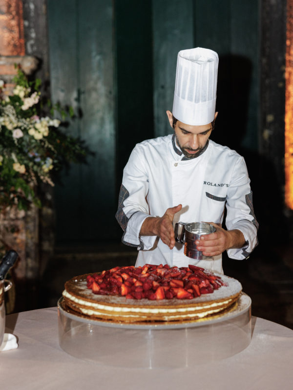 True to their love for Italian culture, Shelby and Brenden delighted their guests with a culinary journey that blended tradition with interactive experiences. The pièce de résistance was a Millefeuille cake, freshly assembled in front of the guests in a vibrant, celebratory atmosphere. Guests joined in singing as the couple participated in its preparation—a memorable moment of unity and joy.