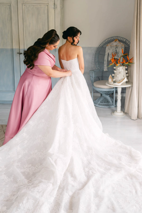 Food was one of the most important elements of our celebration. We both love a good meal and wanted every guest, including our many vegetarian family and friends, to have something truly special to enjoy. Both Casa Troccoli and Villa Bokeh offered elegant food and carving stations, with beautifully presented dishes that guests could savor throughout the night. Our guests can’t stop praising the remarkable flavors and the care put into every bite. For our late-night snack, we served wood-fired pizza, a playful nod to the bride’s New Jersey roots.