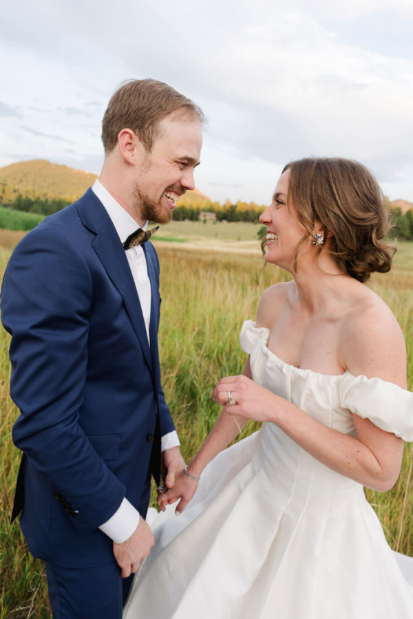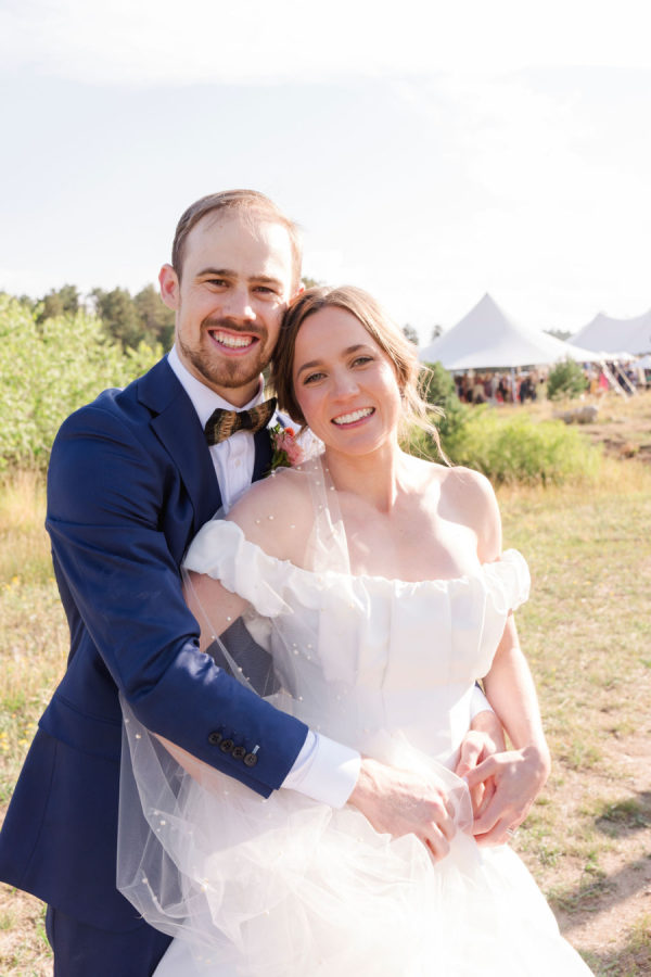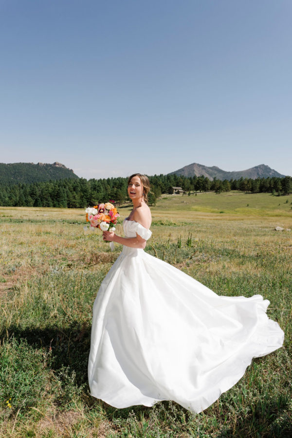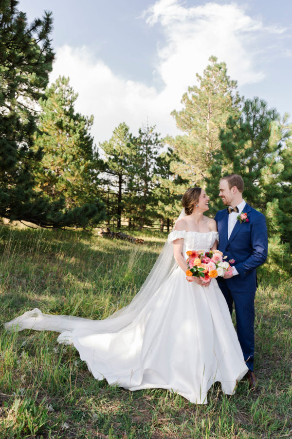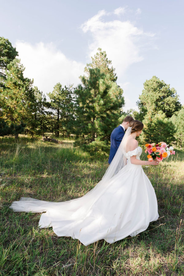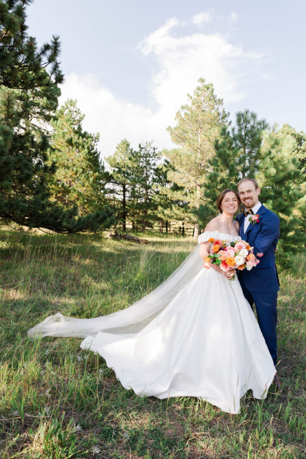 [field title=”Wedding Gown”]Kelly stunned in a romantic off-the-shoulder gown with a full skirt and a pearl-dotted veil that added the perfect touch of whimsy.[/field]