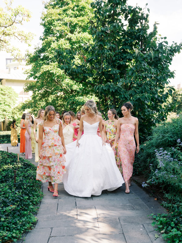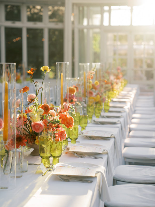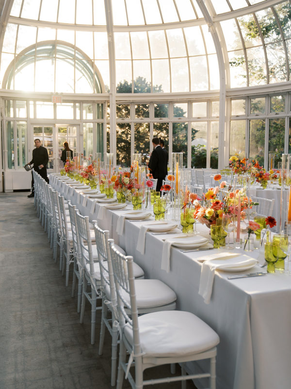 This Brooklyn Botanic Garden wedding was a vibrant celebration of nature’s beauty, infused with the charm of a garden party. Bursting with bright florals from Blue Jasmine Floral, the design embraced the lush surroundings, creating an atmosphere that was both romantic and joyfully exuberant. Guests were immersed in a whimsical yet elegant setting, where blooming arrangements, natural textures, and soft, playful details came together seamlessly. The vision was to capture the magic of a late-summer garden in full bloom—lush, colorful, and effortlessly enchanting.