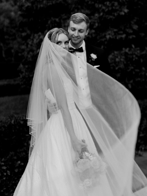 The bride wore a strapless Reem Acra ballgown with a blusher veil.