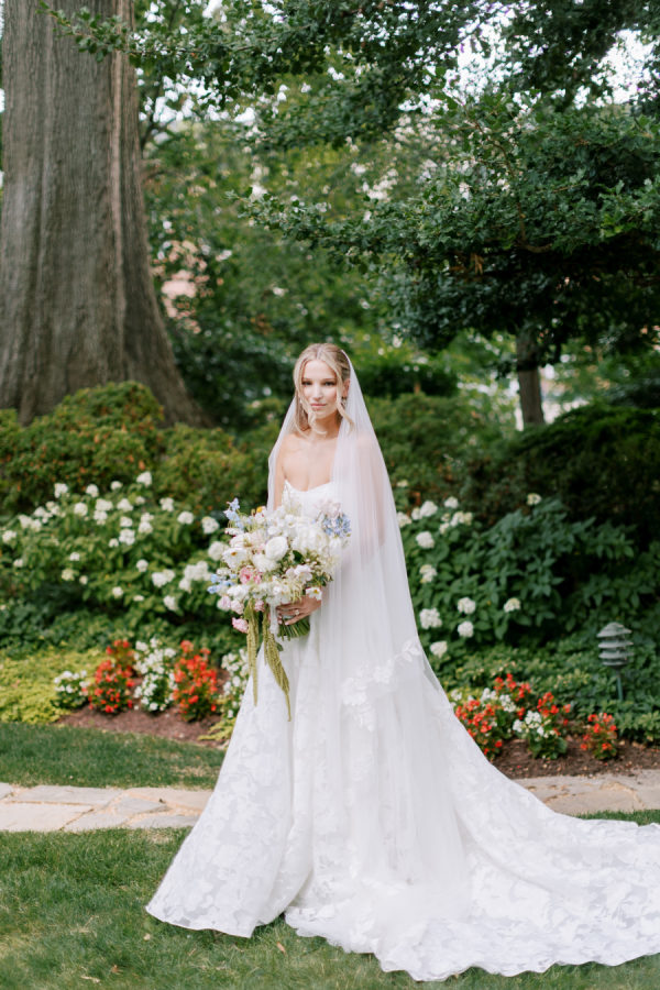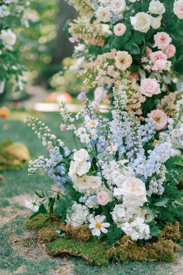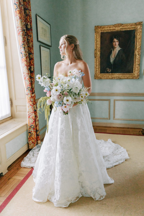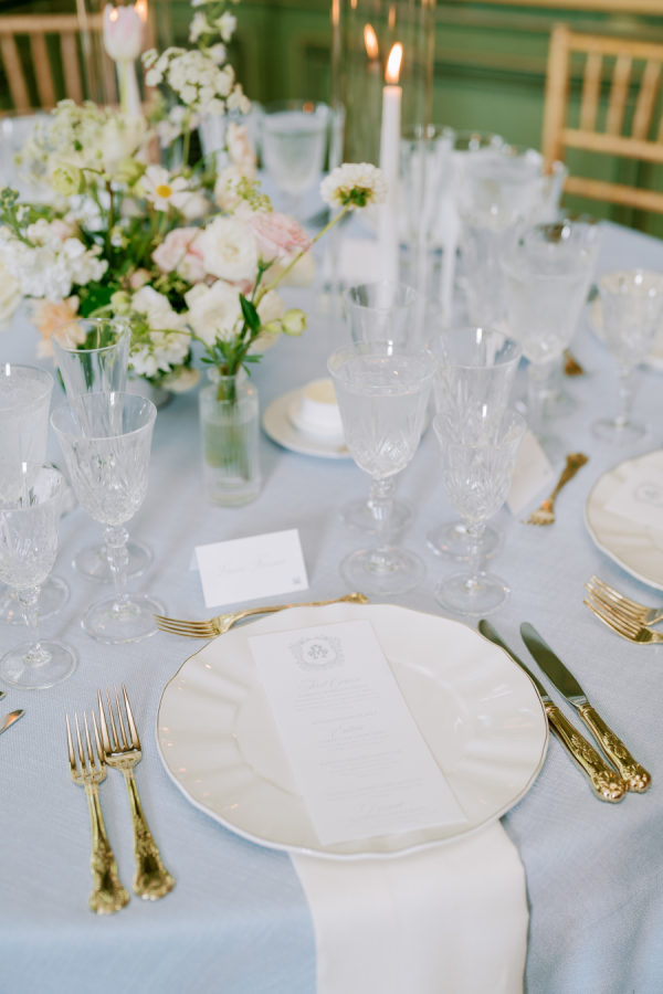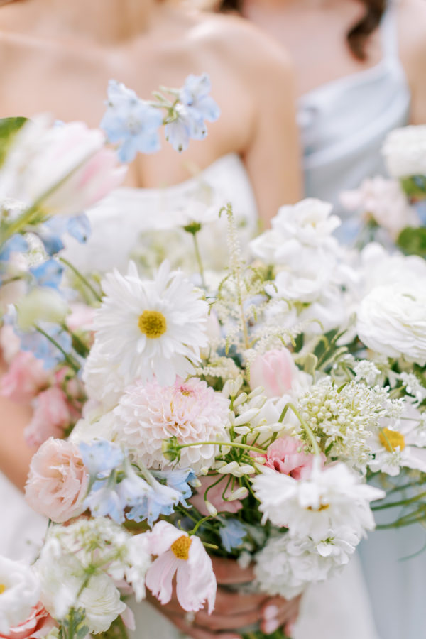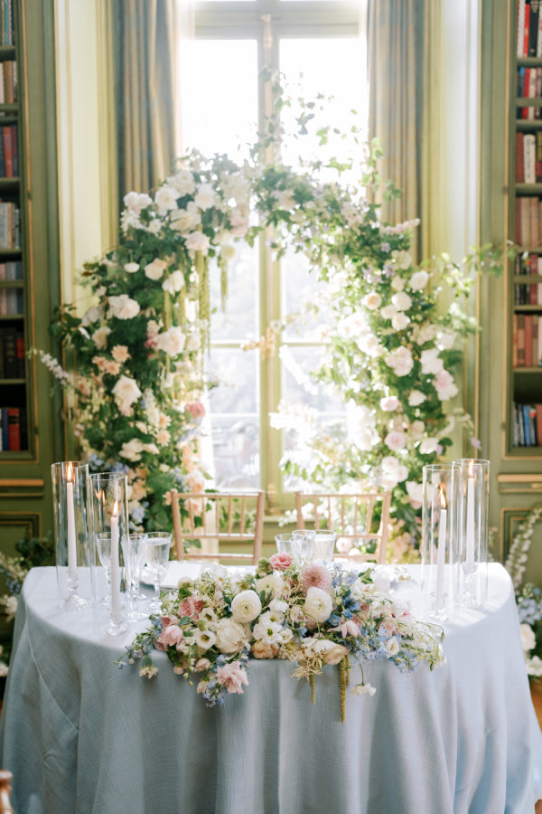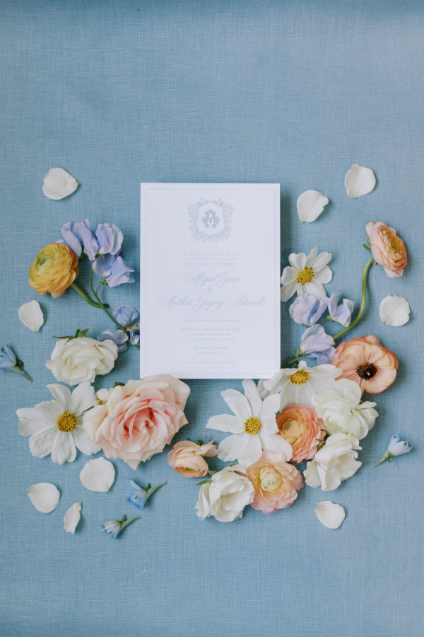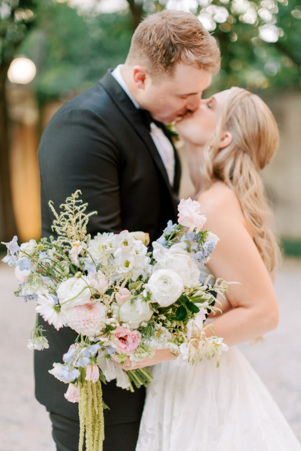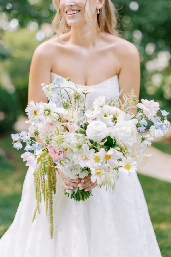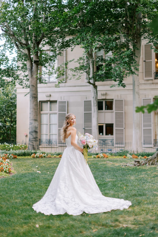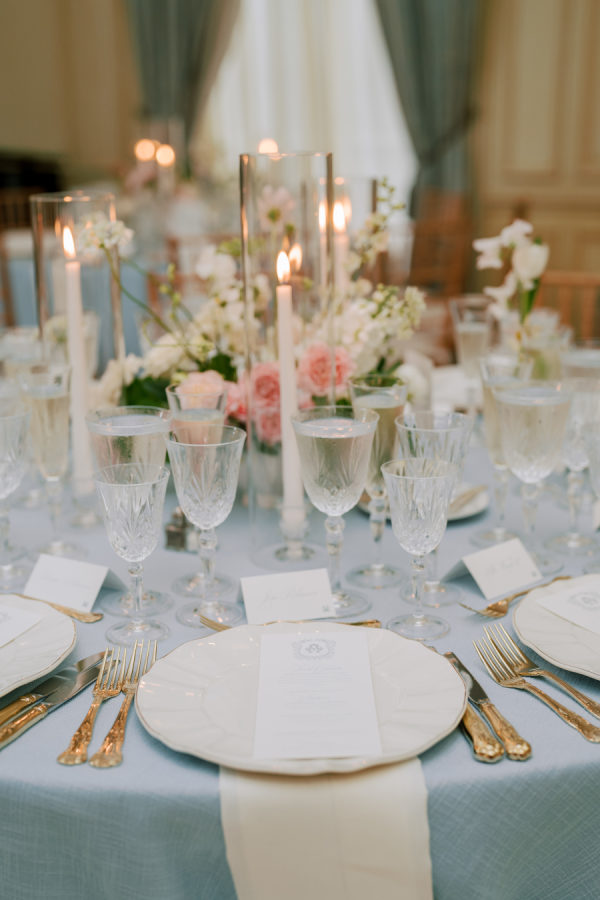 [field title=”Florals & Decor”]Our goal was to create a garden-inspired, whimsical yet refined floral experience that felt organic, romantic, and timeless. We worked within a pastel palette of soft blush, cream, light peach, and airy touches of light blue. The designs featured light, airy textures and natural movement—reflecting the effortless beauty of an English countryside garden with a slightly elevated touch for a formal celebration at Meridian House.[/field]
