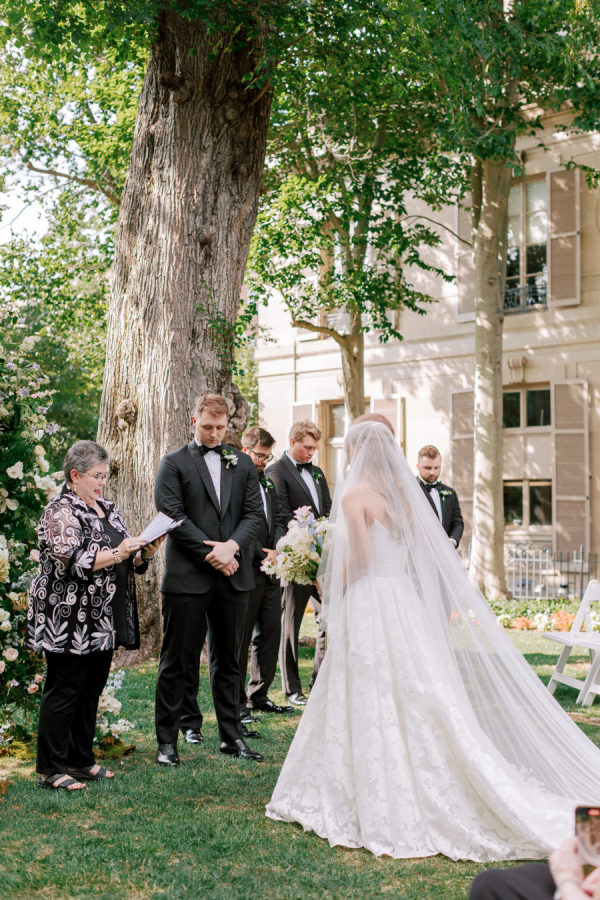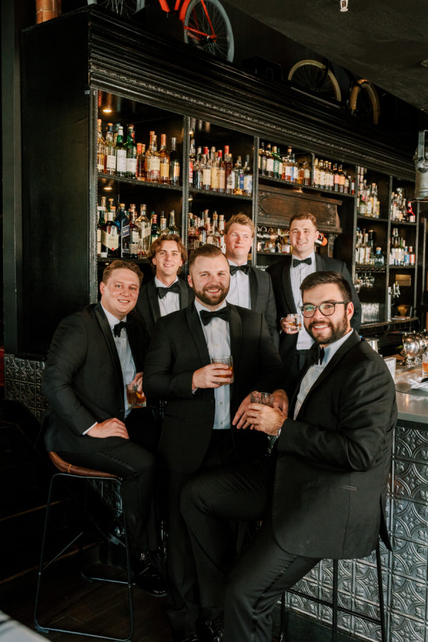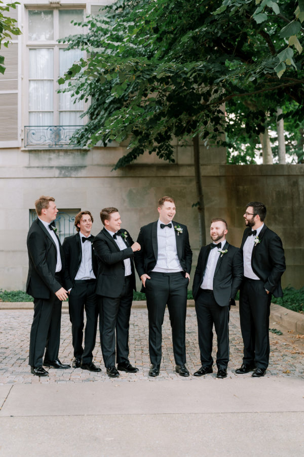 The groomsmen wore black tuxedos from The Black Tux.
