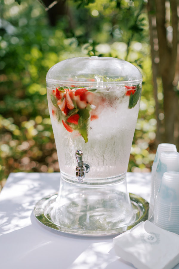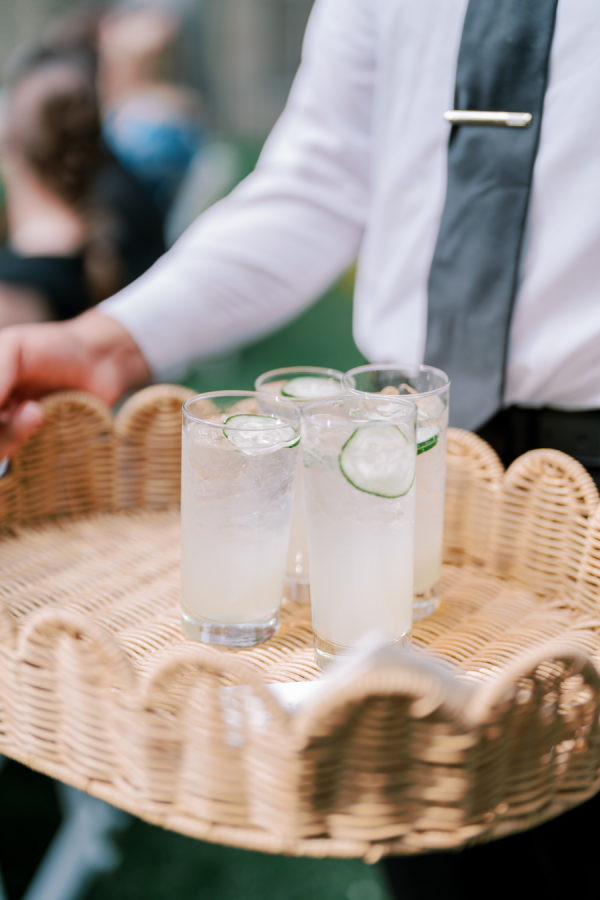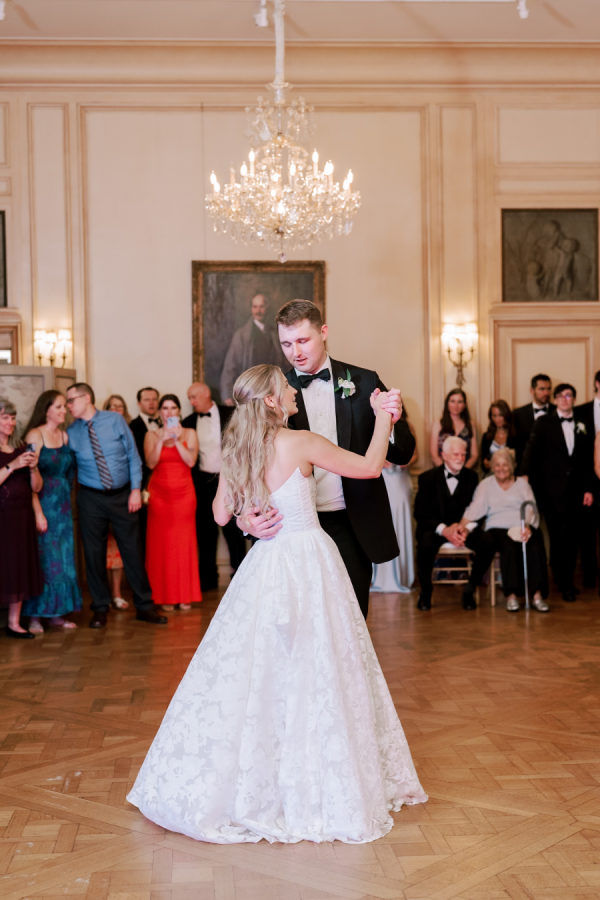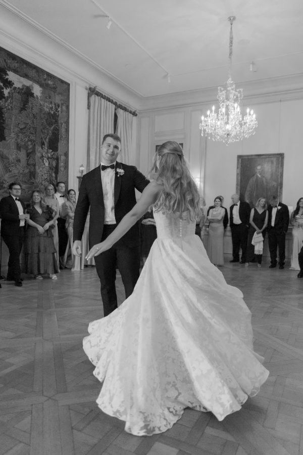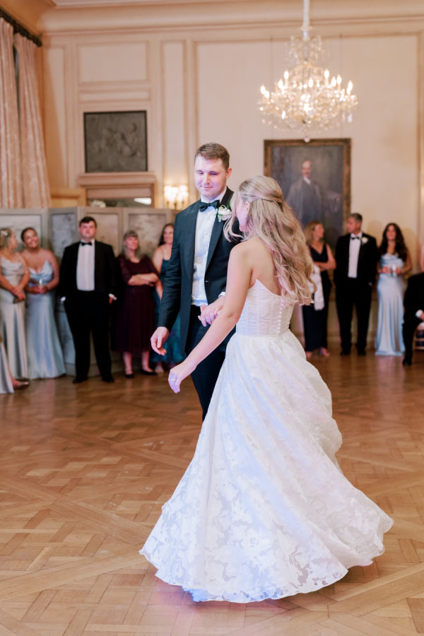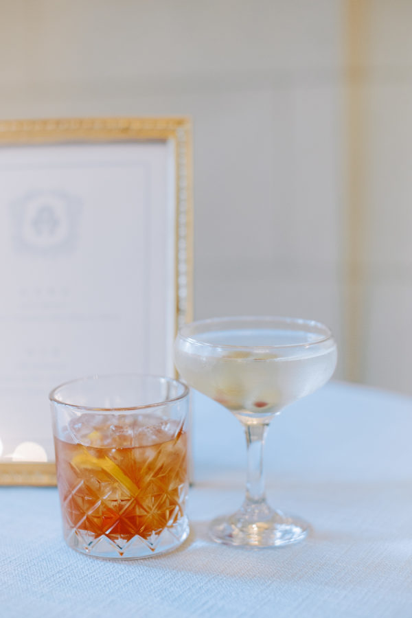Abby and Matthew’s love of travel and various foods was a big focus of their wedding. Cocktail hour was served with delicious hor d’oeuvres, cocktails, and conversations with their guests. They shared their signature cocktails and deluxe beverages. Abby’s choice was a Dirty Martini and Matthew’s an Old Fashioned. Dinner was served over a three-course meal made by the talented team from RSVP Catering. Later, they shared laughs over cutting their cream-filled cake, also made by RSVP Catering. Later, the couple popped open a bottle of champagne and listened to tearful toasts by their closest friends and family.