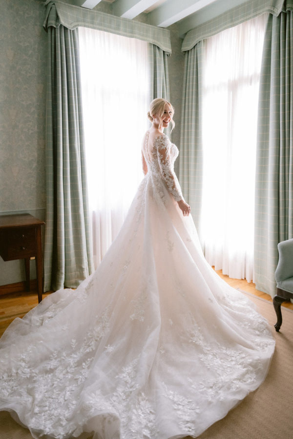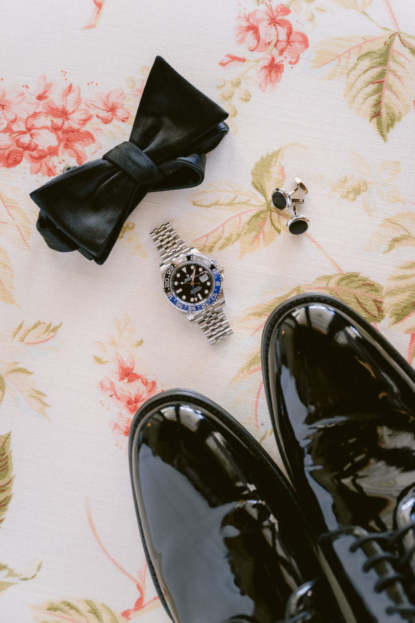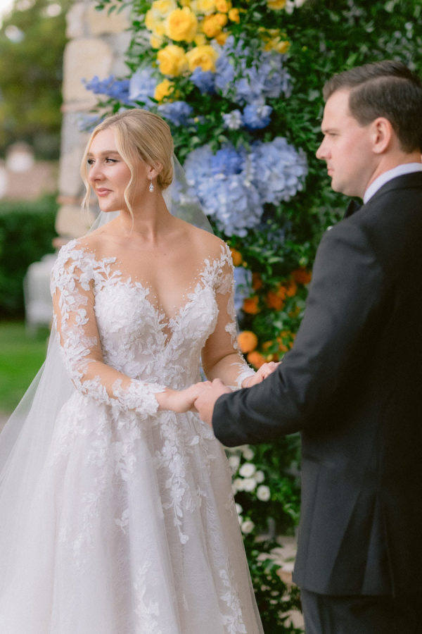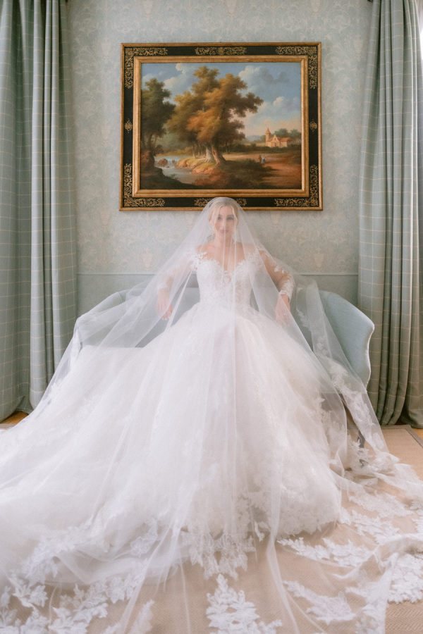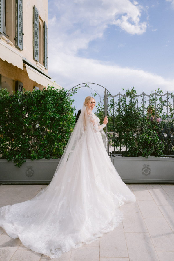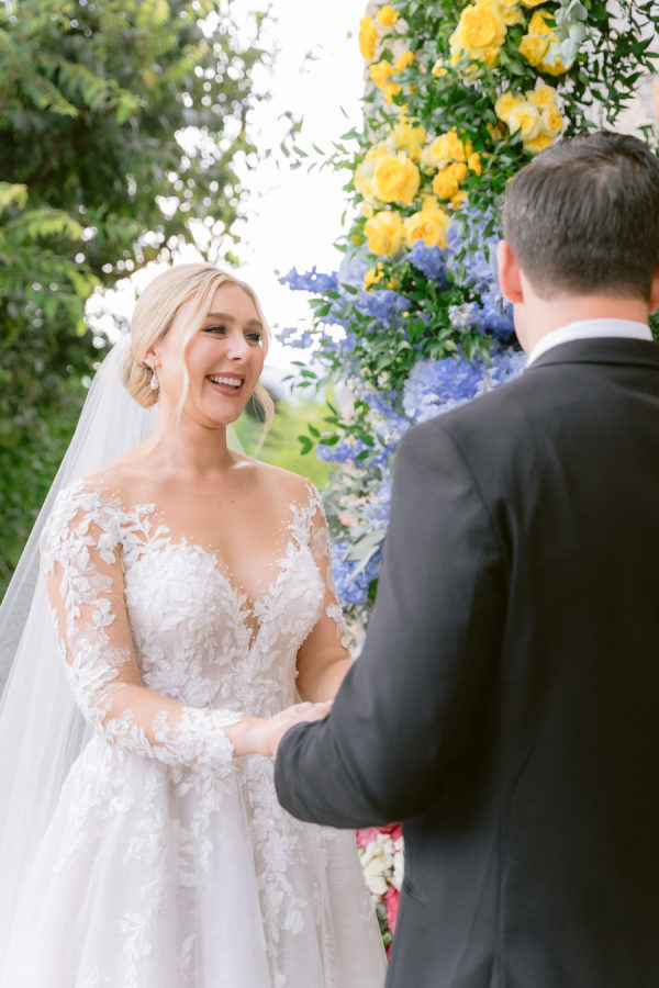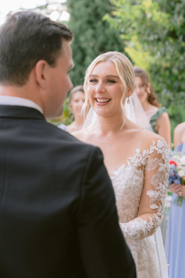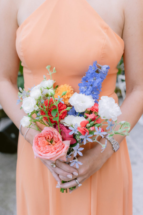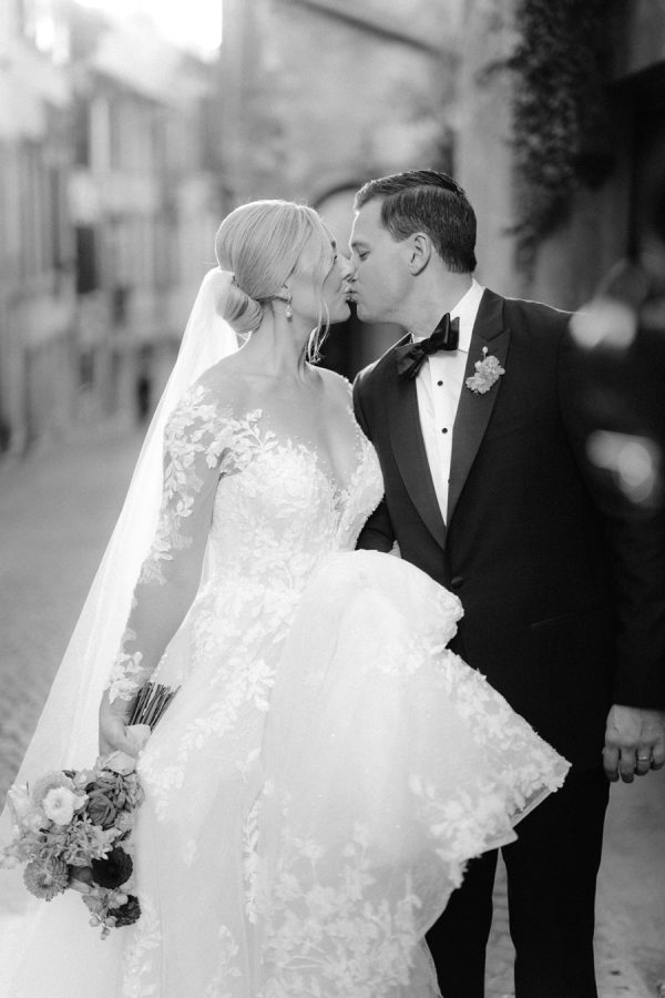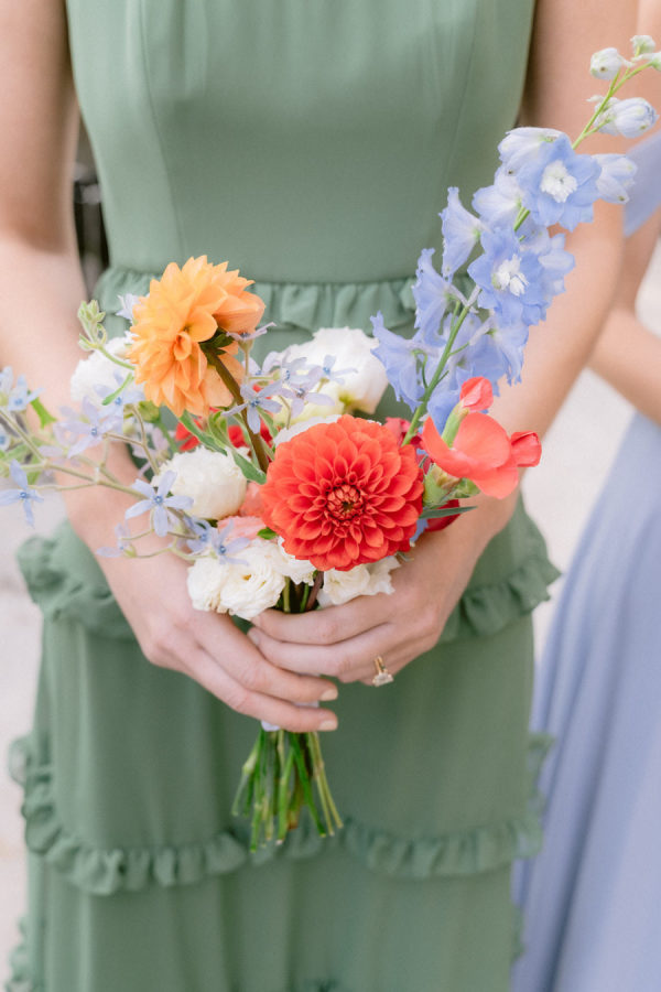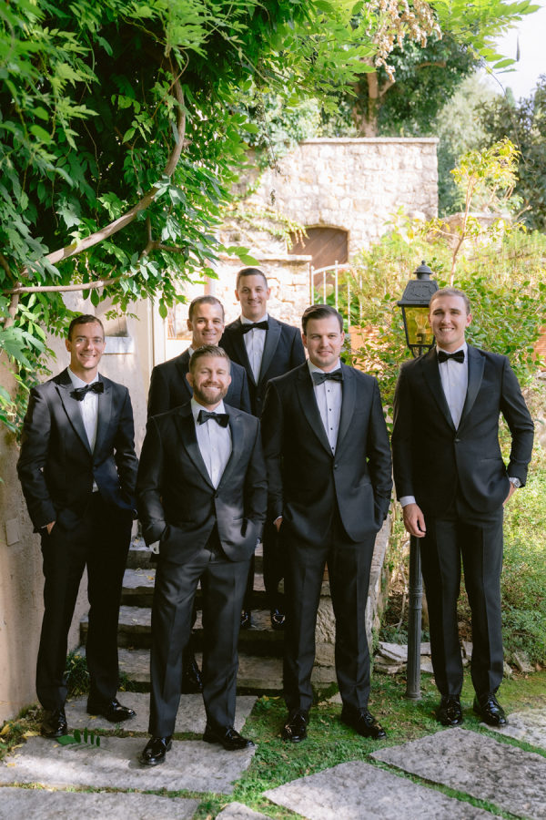 The floral arrangements for the ceremony and reception were thoughtfully designed, incorporating classic Italian blooms that added a touch of romance and charm. The stunning flowers, from the bride’s bouquet to the decorative arrangements throughout the villa’s gardens, complemented the natural beauty of the venue, creating an ethereal ambiance for the event. The bridal bouquet was rounded but naturally shaped with hydrangeas, roses, garden roses, spray roses, dahlias, delphinium, and a few greenery.