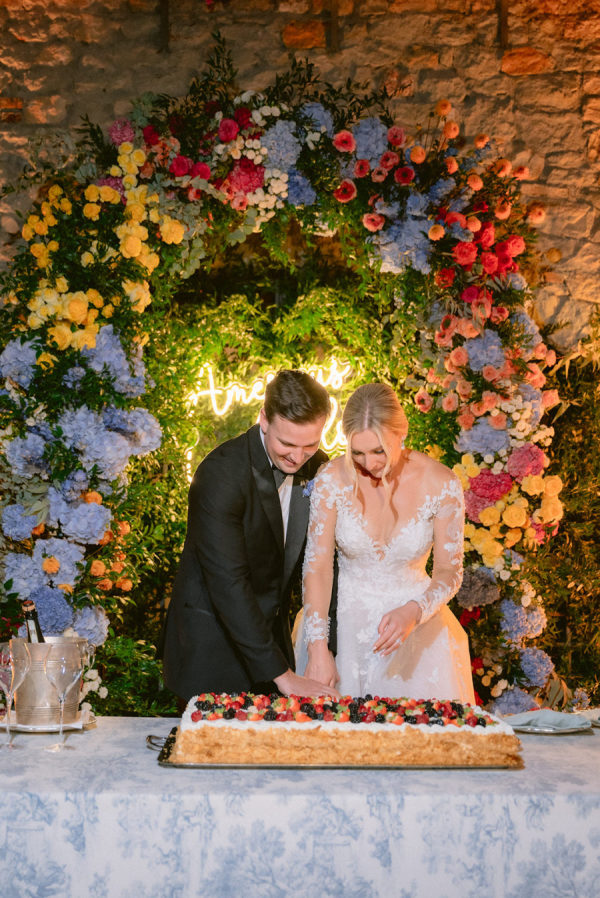 The evening concluded with a beautiful wedding cake that was not only a visual masterpiece but also a delicious treat for all the guests. Rachel and Colin decided to cut and then serve to their guests a traditional Italian Millefoglie stuffed with a delightful chantilly cream and decorated with mixed berries. The cake-cutting moment, set against the stunning backdrop of Villa Cipriani’s gardens, was a fitting end to a perfect day, symbolizing the couple’s love and the beginning of their new life together.