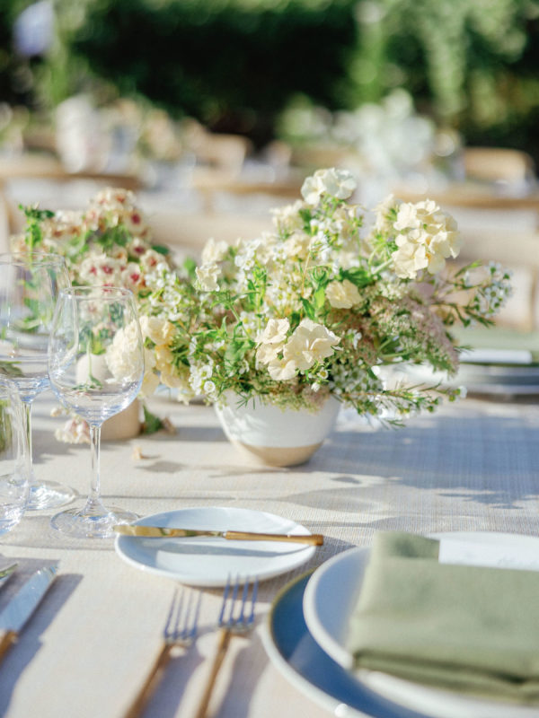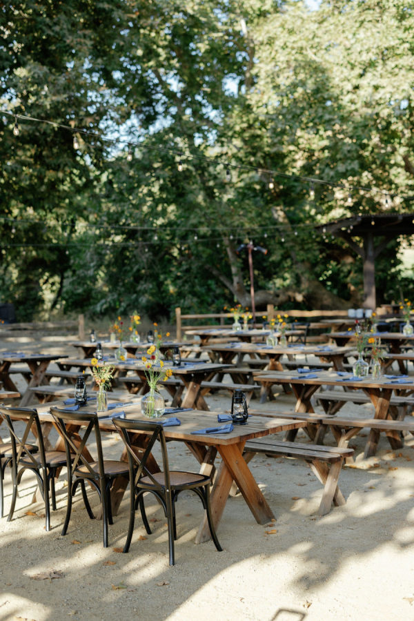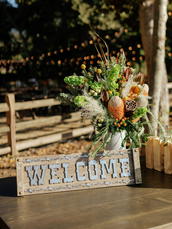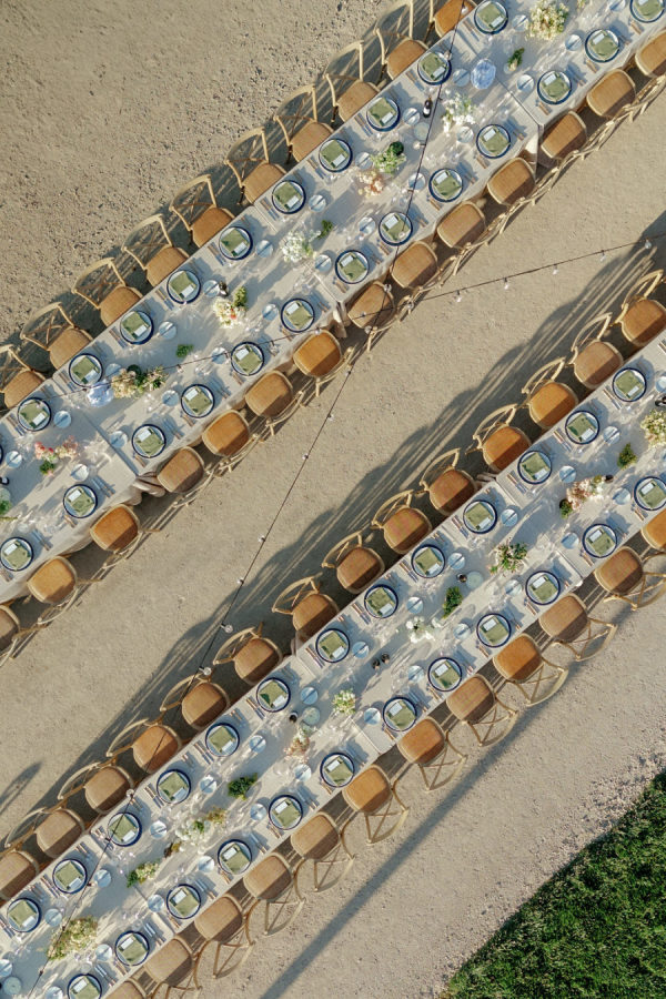 Abby and Bobby wanted it to feel elevated but never too serious, with natural textures, lush florals, and playful touches. ‘Because we were surrounded by beautiful vineyards and gorgeous barns- we wanted to play into the natural colors of the region, but also it still feels like summertime in September in Santa Yne, and so we wanted to play into a bright and joyful aesthetic too, but while still leaning into the fall with dark blues and moss colors. We wanted our wedding to be fun and memorable, especially since most of our guests were from out of town. We emphasized good food, good drinks, and good music. ‘