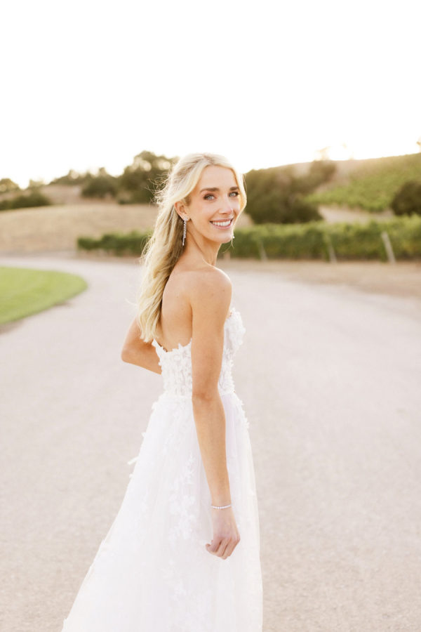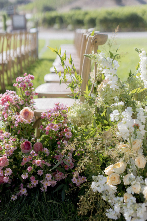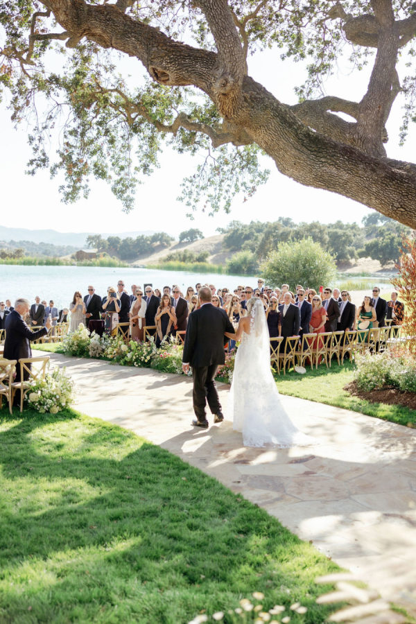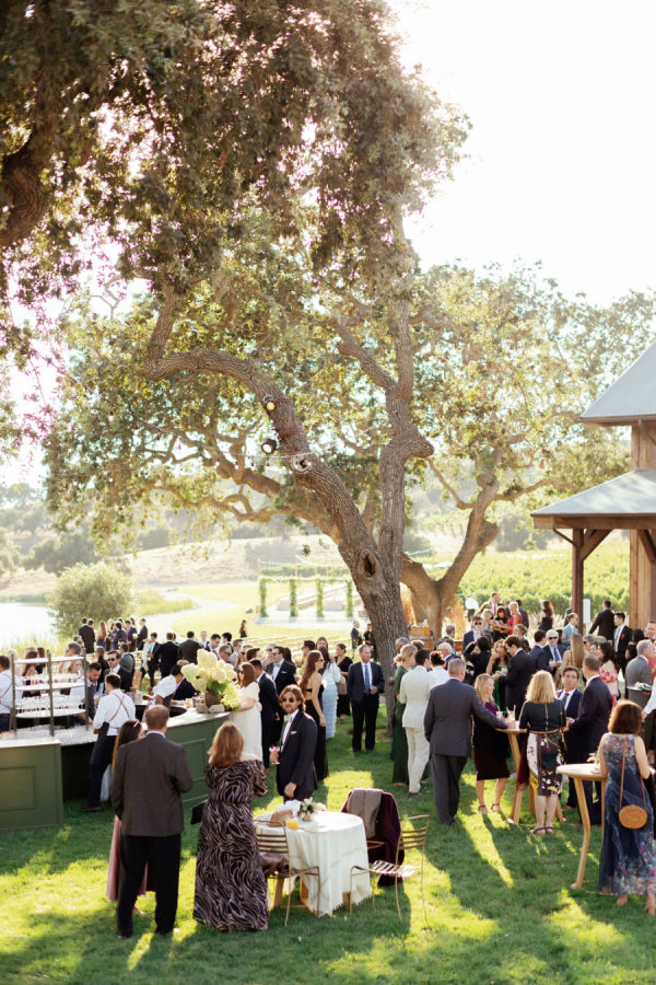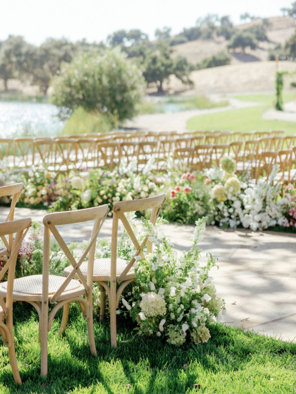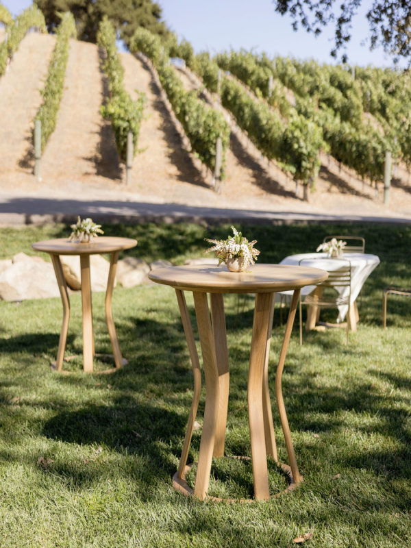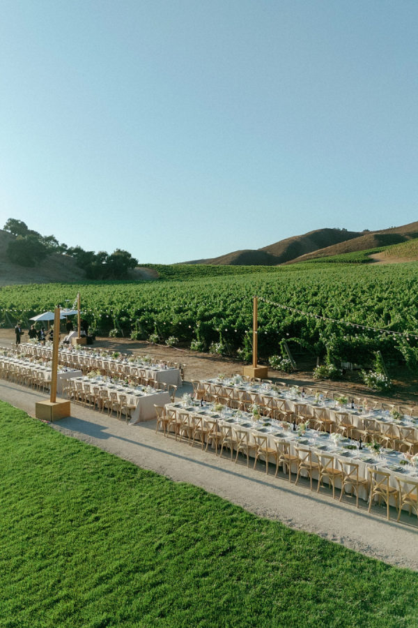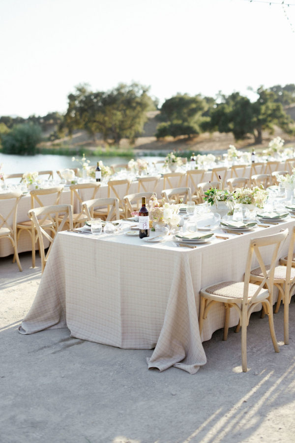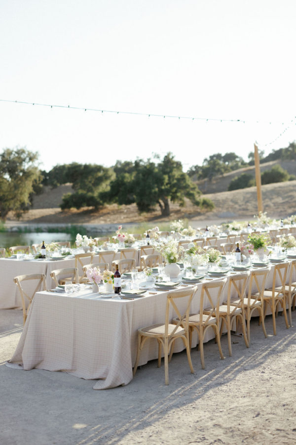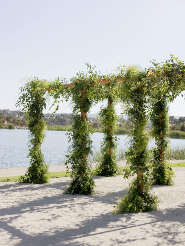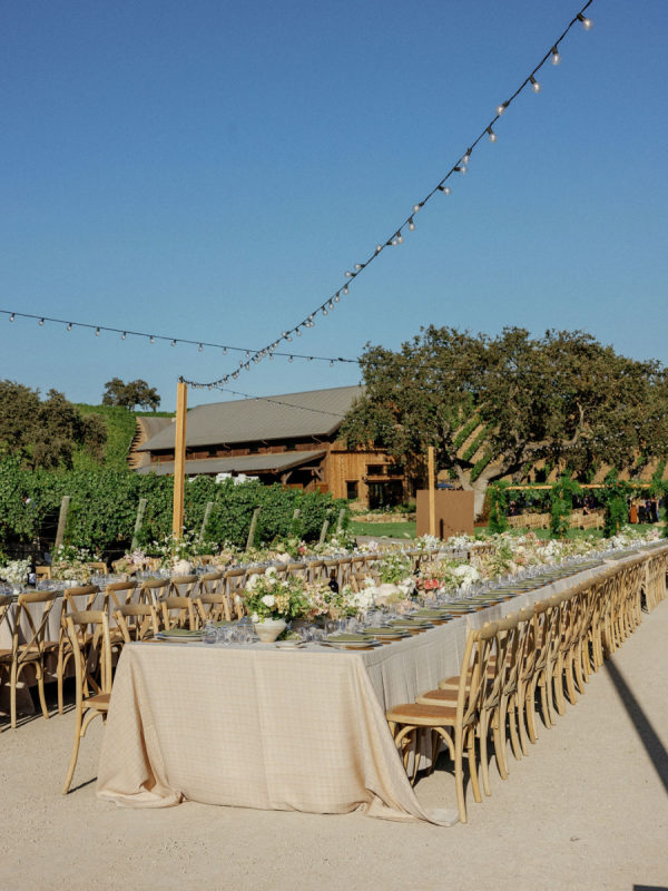 A warm, wine country setting with a refined but festive aesthetic—playing into late summer with touches of early fall. Earthy, organic neutrals with accents of fresh greens, creamy whites, and soft natural tones. The setting itself (vineyards, oak trees, rolling hills, and water) provides much of the color story, and the design choices lean into enhancing, not overpowering, the natural landscape. Bash, please, did the most beautiful job.