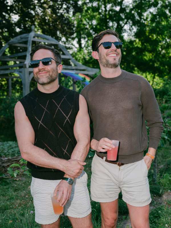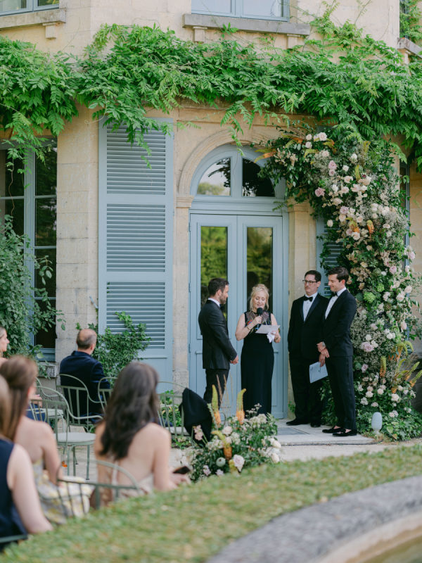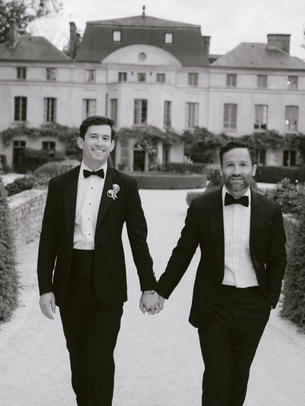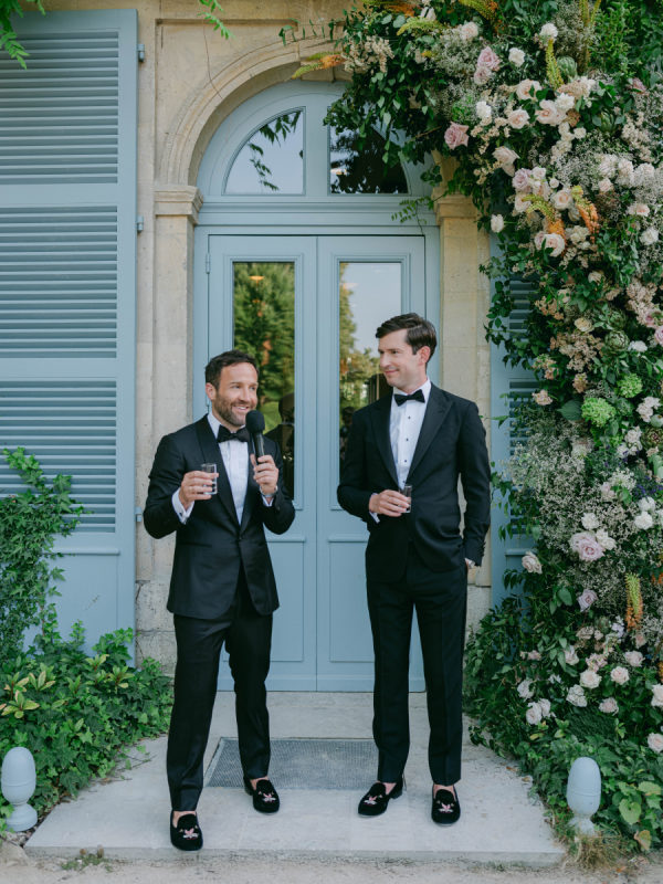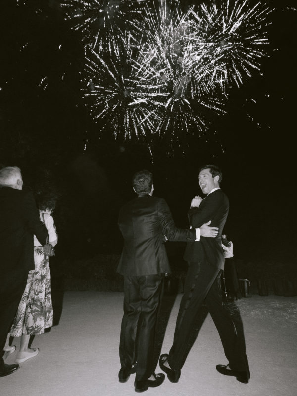 Christopher & Matthew wanted a very special moment that was a real experience for all the guests. The first day started with a quite welcome drink by the river. The next day was fun with a pool party all day long, followed by a “Tea Dance” that was originally a daily event in Fire Island Pines and Provincetown (gay beach vacation spots), it’s an essential happy hour in the late afternoon at an outdoor bar with lots of music and packed with people. The wedding day still had some surprises with fun and fashion group photos, a dinner “al fresco”, and a fantastic fireworks display before the party!