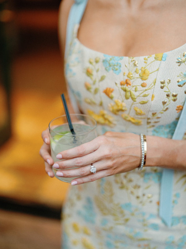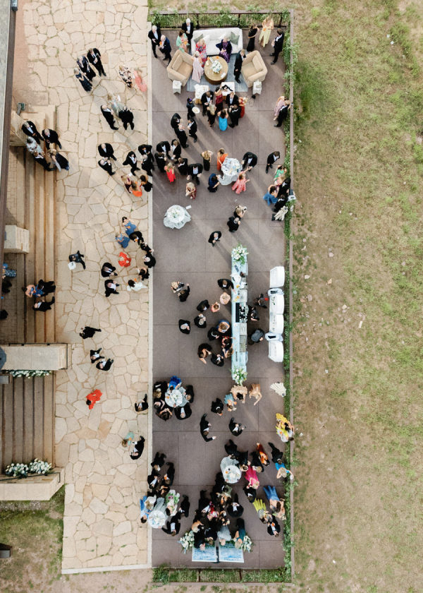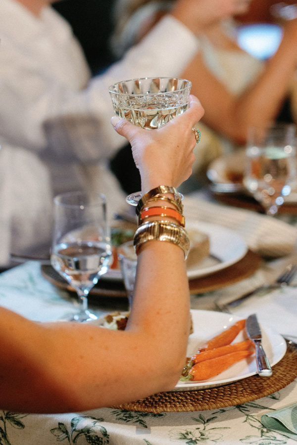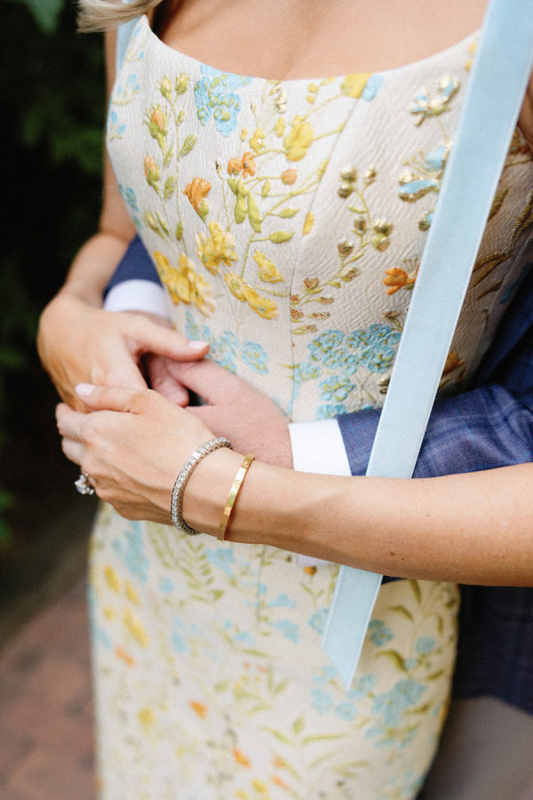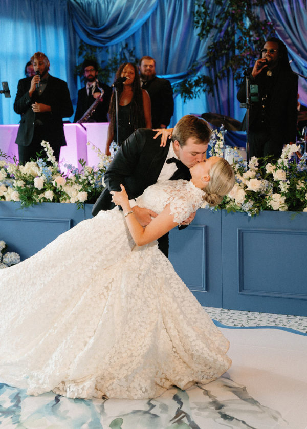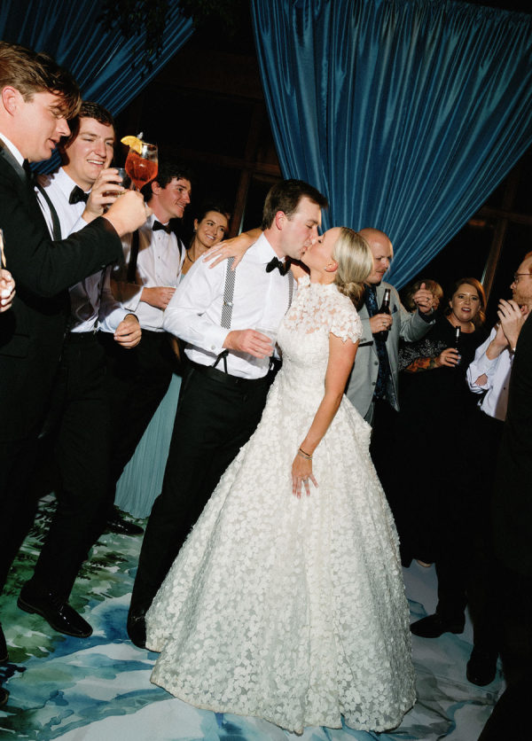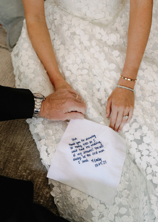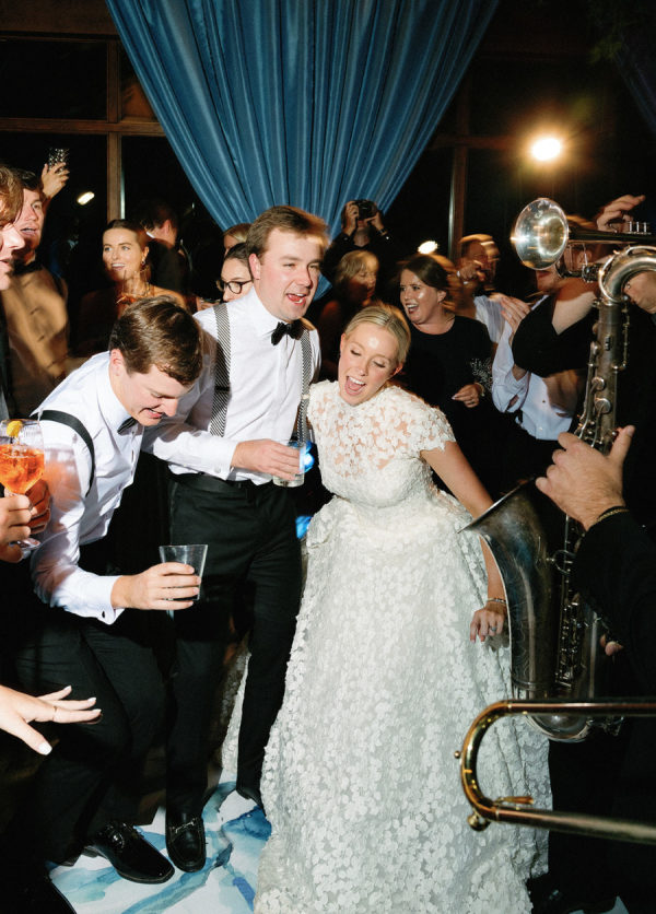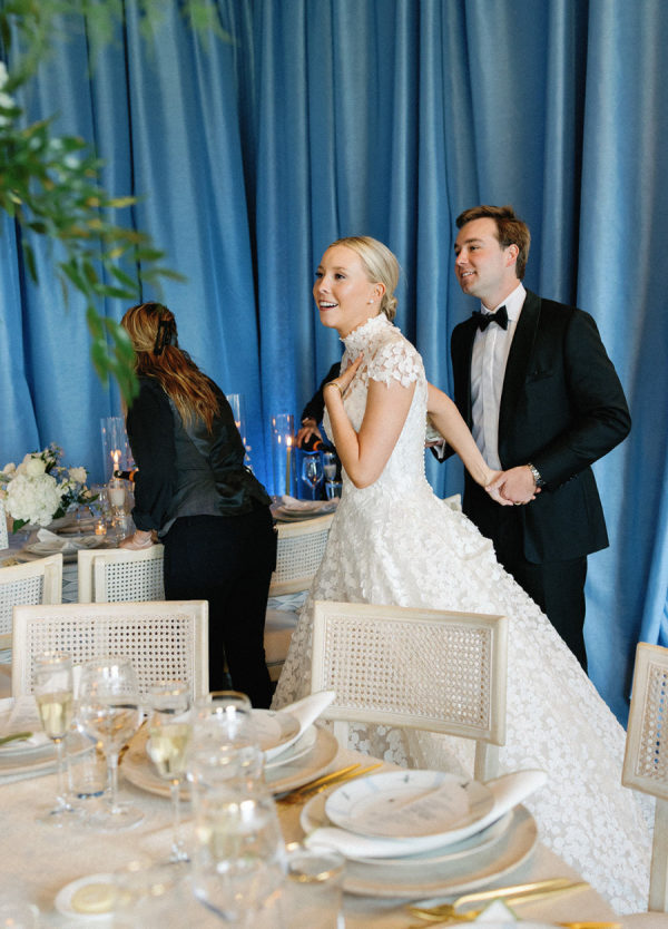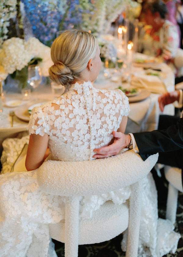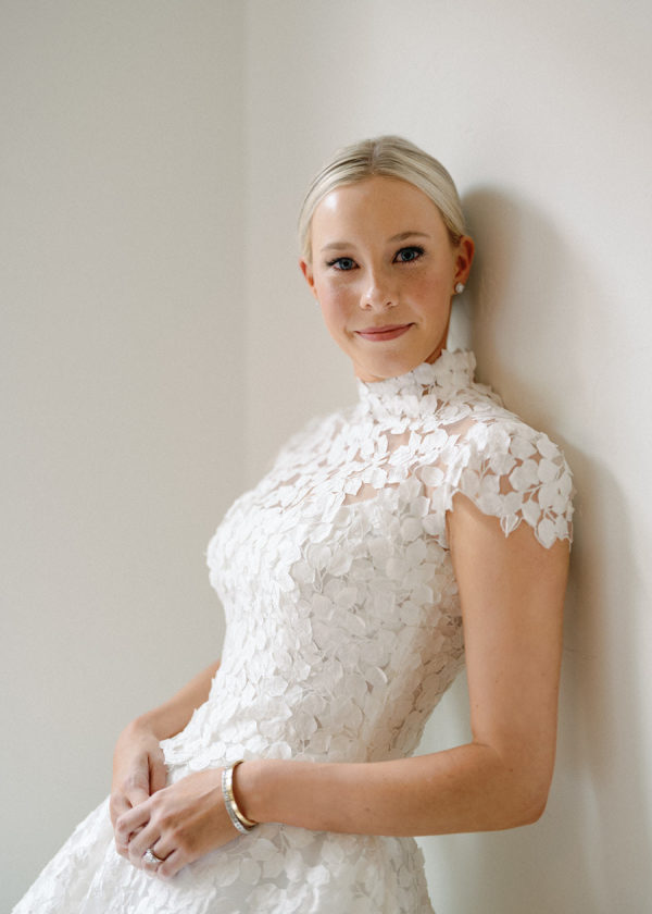 The bride wore a Reem Acra gown with a detachable lace bodice that added beautiful texture and coverage for the ceremony. Later in the night, she removed the top layer to reveal a cleaner, lighter silhouette — an easy, intentional transition that made the dress perfect for dancing and celebrating.