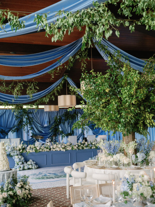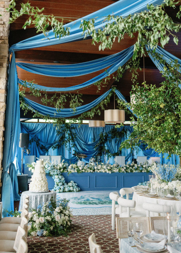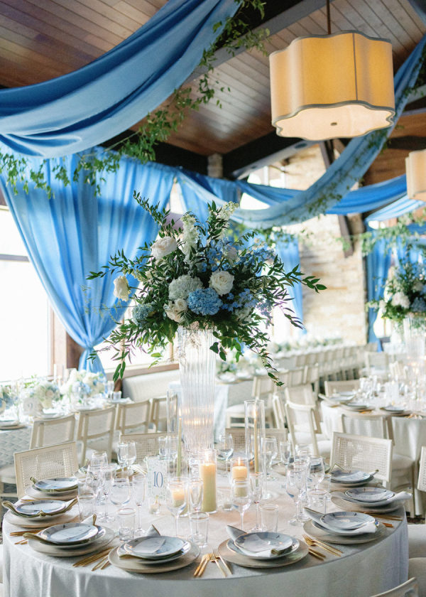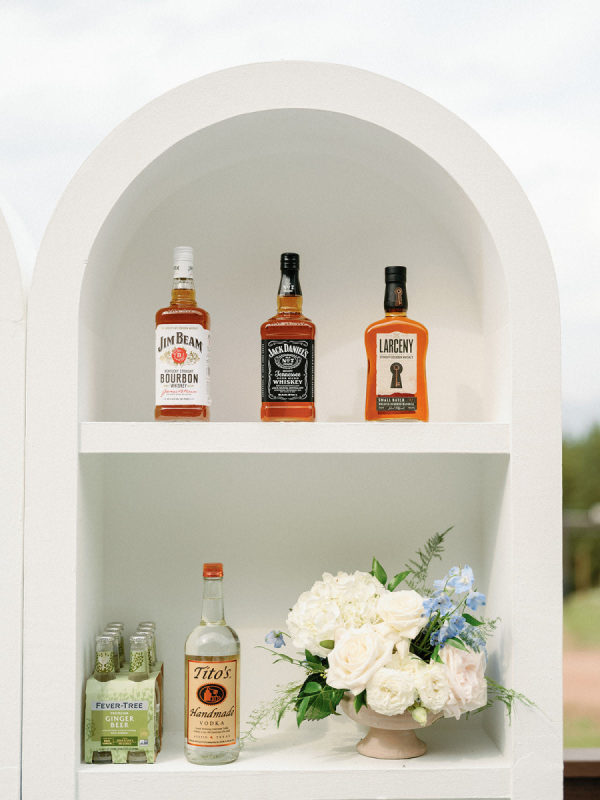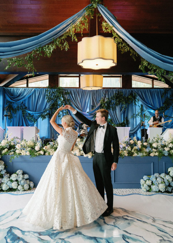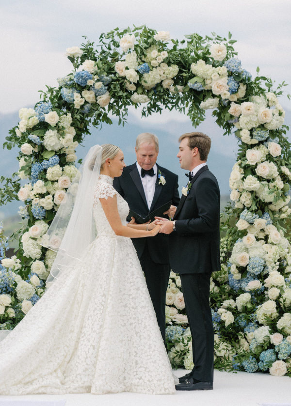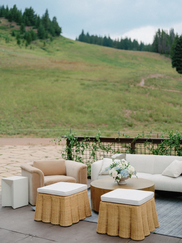 [field title=”Florals & Decor”]The floral design featured a soft mix of garden roses, dahlias, hydrangea, ranunculus, and delicate blue delphinium, layered with fresh greenery throughout. The palette felt light and romantic, with classic white blooms warmed by subtle blue accents—abundant yet airy, and perfectly in step with the mountain setting.[/field]