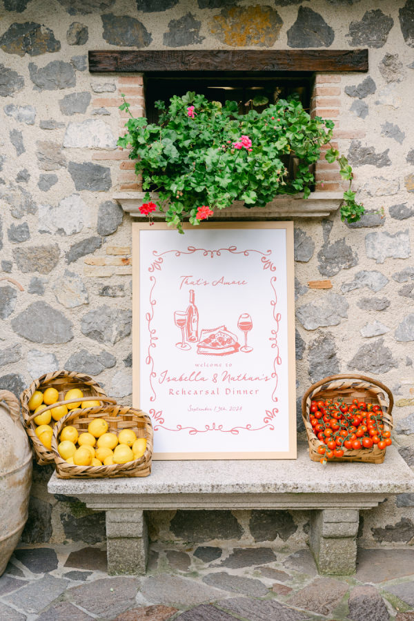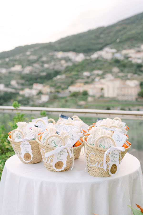 [field title=”Special Detail #1″]The wedding weekend began with a vibrant Pizza Party at Hotel Bonadies, where guests arrived in chic white attire to celebrate under the stars in true Italian style. Upon arrival at the welcome dinner, each guest was greeted with a beautifully curated traditional Bimini bag — filled with thoughtful gifts and all the essential details for the weekend ahead.