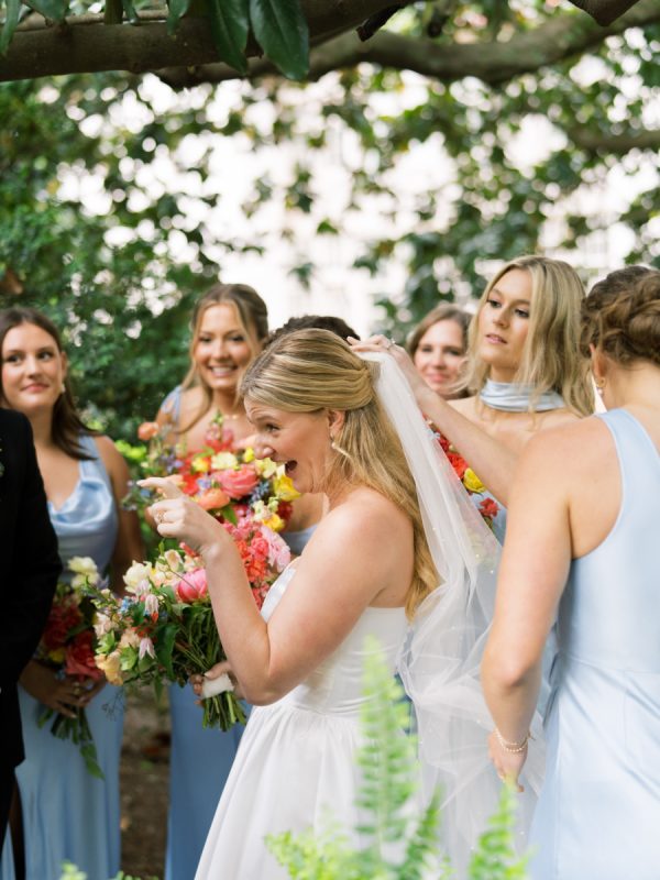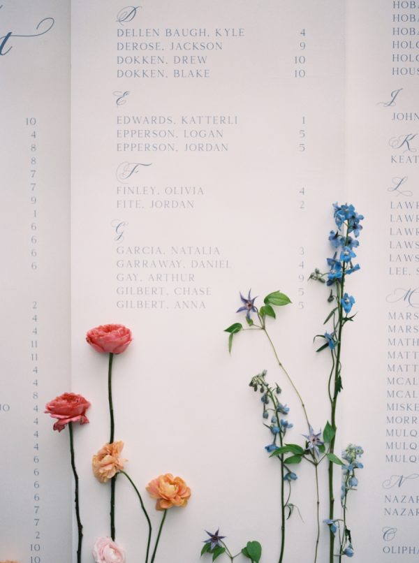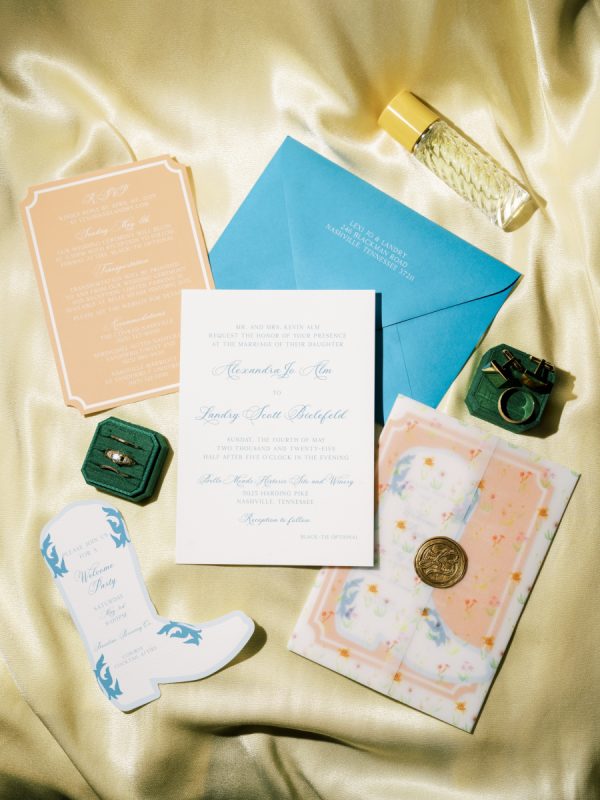 Delightfully colorful, candid, and romantic, LJ and Landry’s wedding mirrored the ease and joy of their whirlwind love story. Custom artwork by a close friend was featured throughout the paper goods — original paintings created while the couple was dating, inspired by the wildflower bouquets Landry used to pick and leave on LJ’s windshield.
