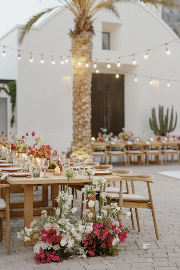 The vibe and the vision were always how we tie in the surrounding settings of the ocean and the desert, with the local style of Baja California, and also make it the couple’s vision too, which Sarah said was ‘earthy, but a tad bit funky and vintage.” Choosing a venue that already had a solid design that fit that style was a helpful way to build off our own design.