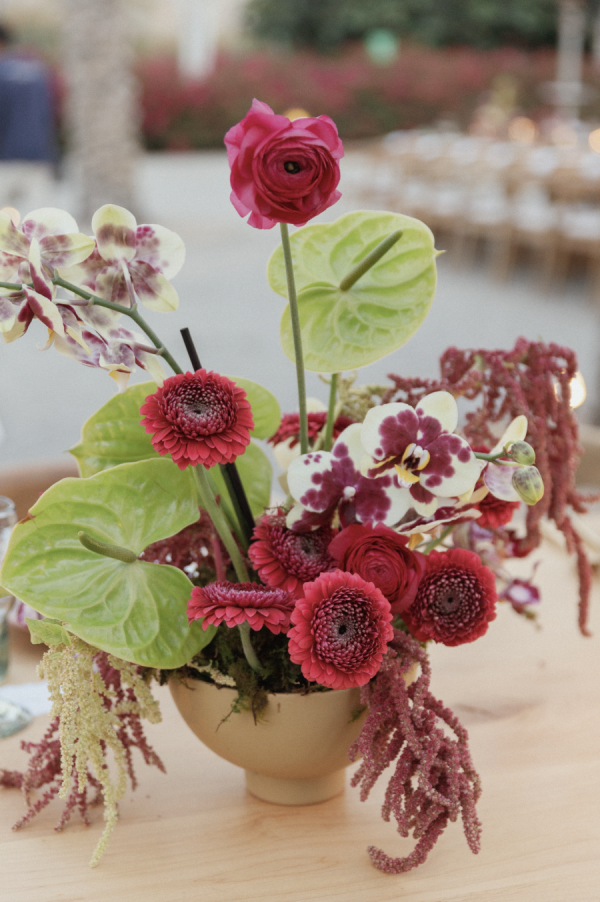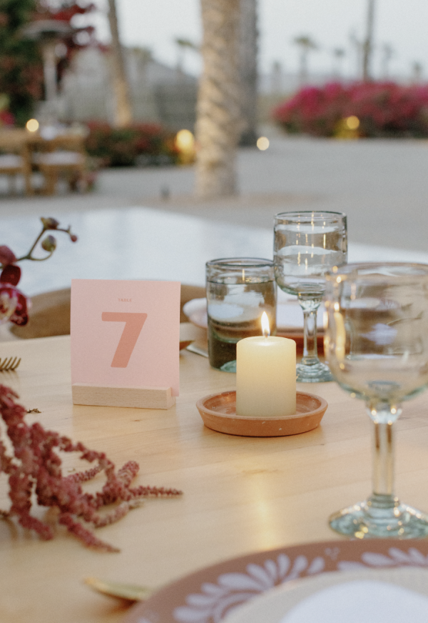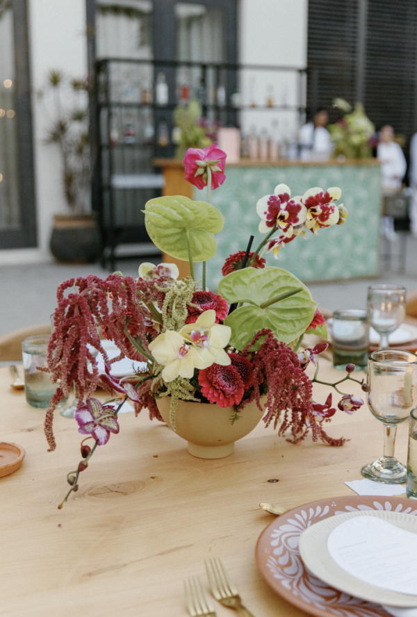 Florals were designed and curated by Allium Studio Floral, based in Mexico City. They went above and beyond on the ceremony, which we then utilized in our dinner space palette. Allium’s specialty is cool and funky compositions, which is exactly what Sarah wanted.