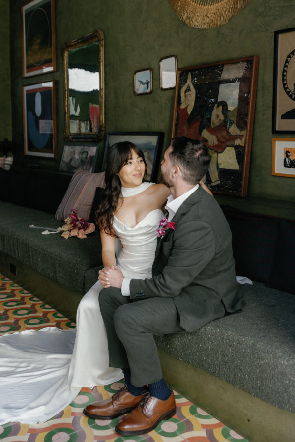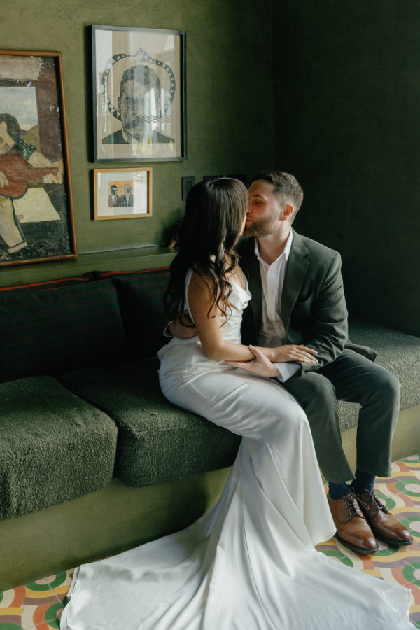The wedding dress is the Katherine Tash Cecilia Gown, sourced from Loho Bride in LA There was no bridal party, so the groom’s Suit is custom from Billy Reid, with shoes from Allen Edmonds.