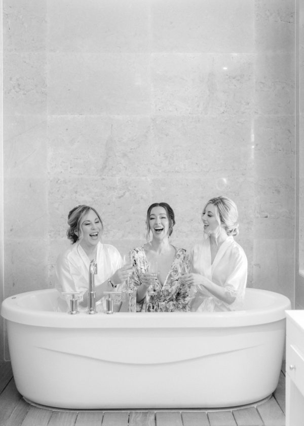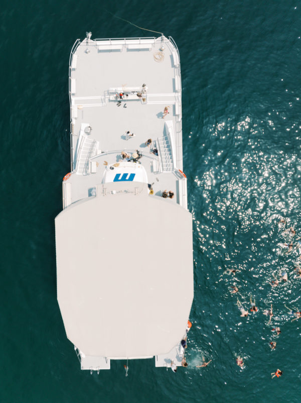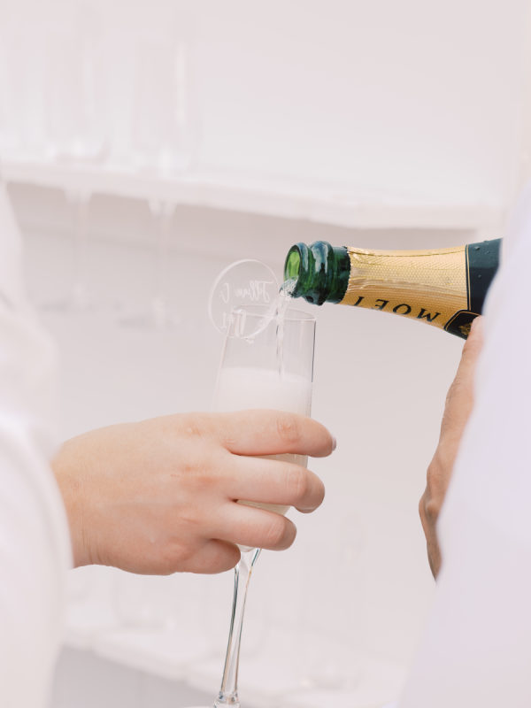 [field title=”Food & Drink”]Guests were treated to champagne from the couple’s custom champagne wall as they entered the cocktail space. Guests dined on exquisite local fare in a multi-course meal setting overlooking the ocean. [/field]