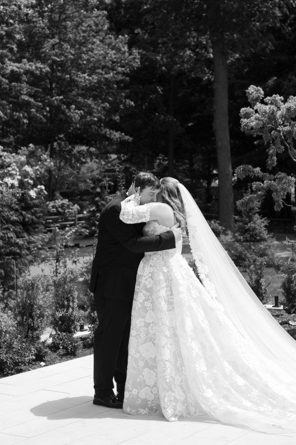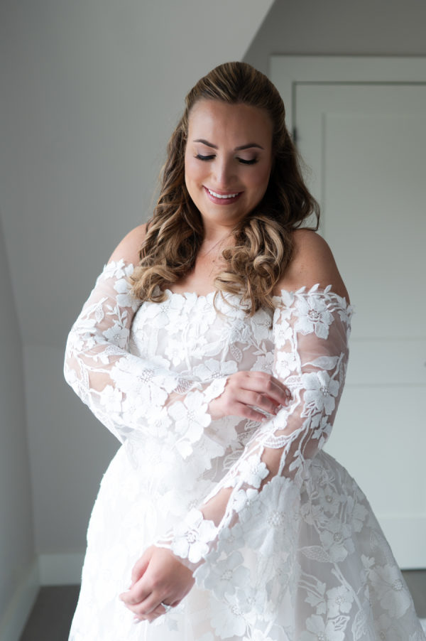 Going into the wedding dress shopping was quite the process for the bride, as she had a completely different look in mind when she first started. As soon as she got to Dimitras, she fell in love with the first dress she tried on. She felt it went perfectly with the garden princess vibe of our wedding. She did try on a few other dresses afterwards, but kept on coming back to that first one. She loved the lace detailing and the removable sleeves, which made it all the more special. You only wear a wedding dress once, so she wanted it to be elaborate and unique.