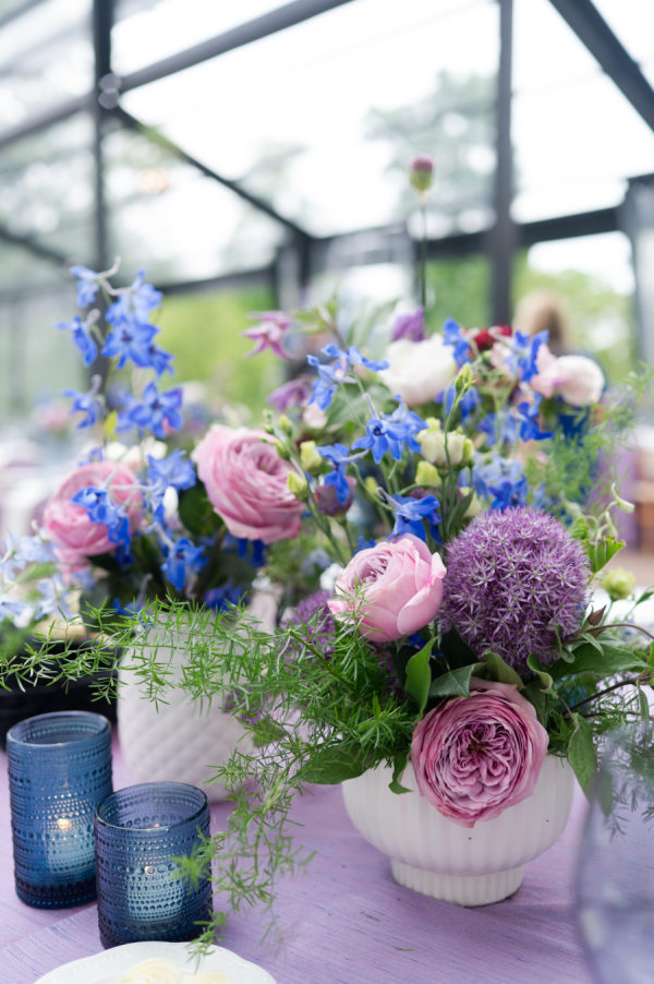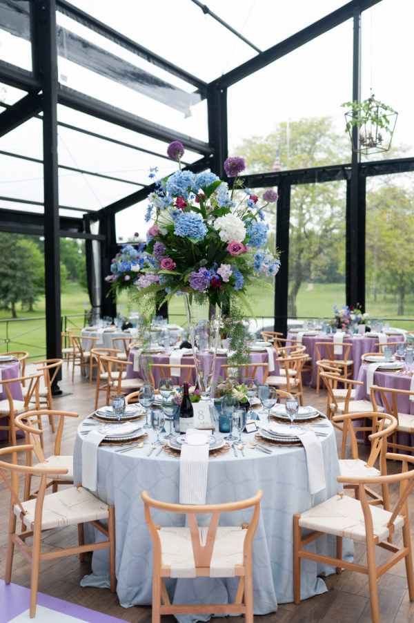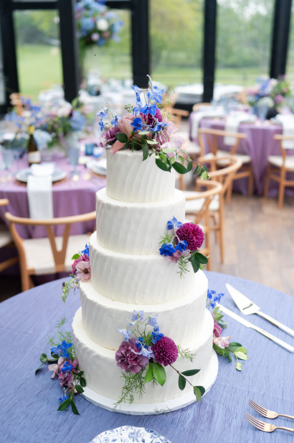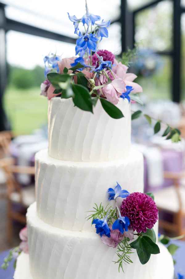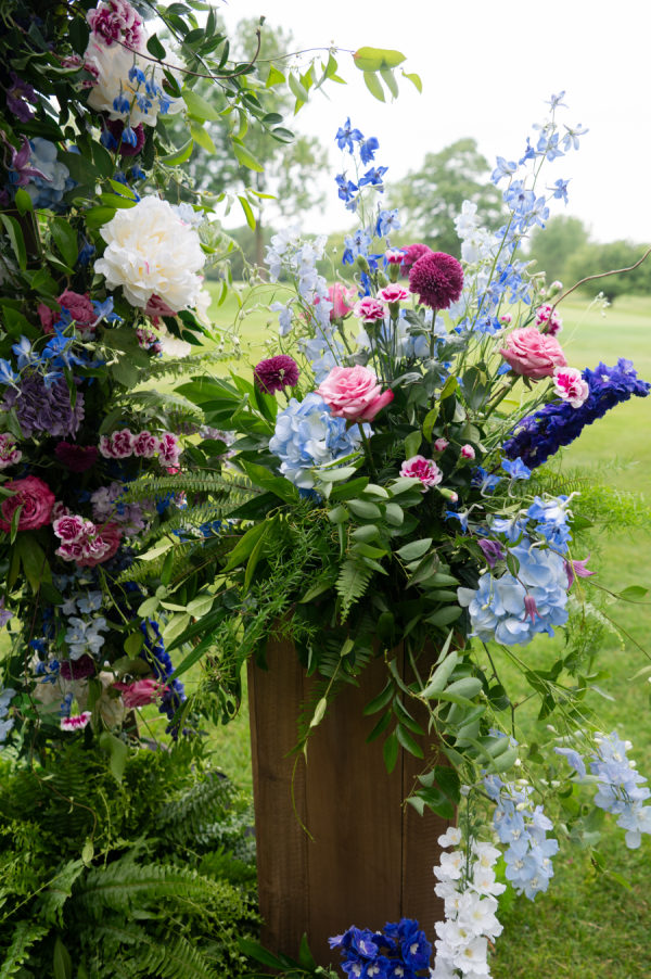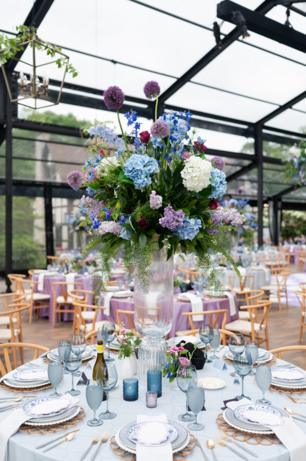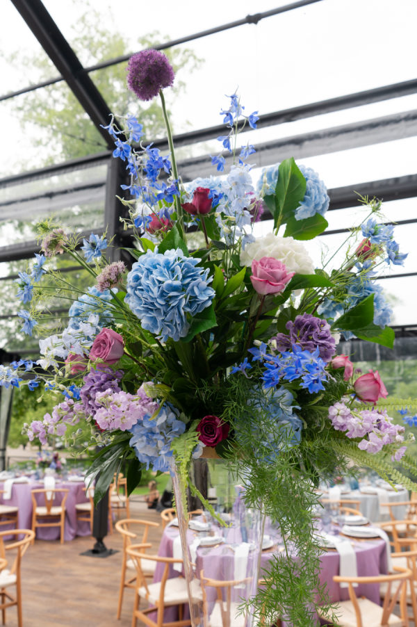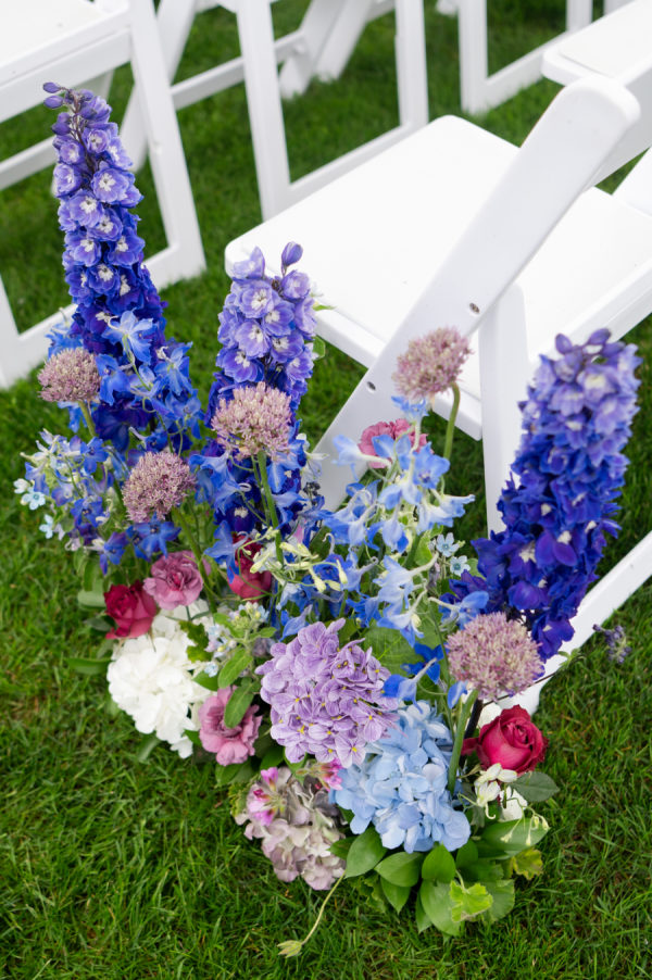 The colors for this incredible day were a mixture of blue and purple tones, both dark and light, and a splash of white and pink throughout the bouquets and floral arrangements.