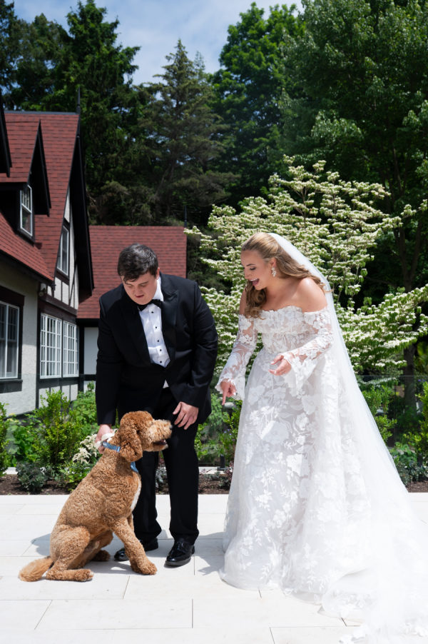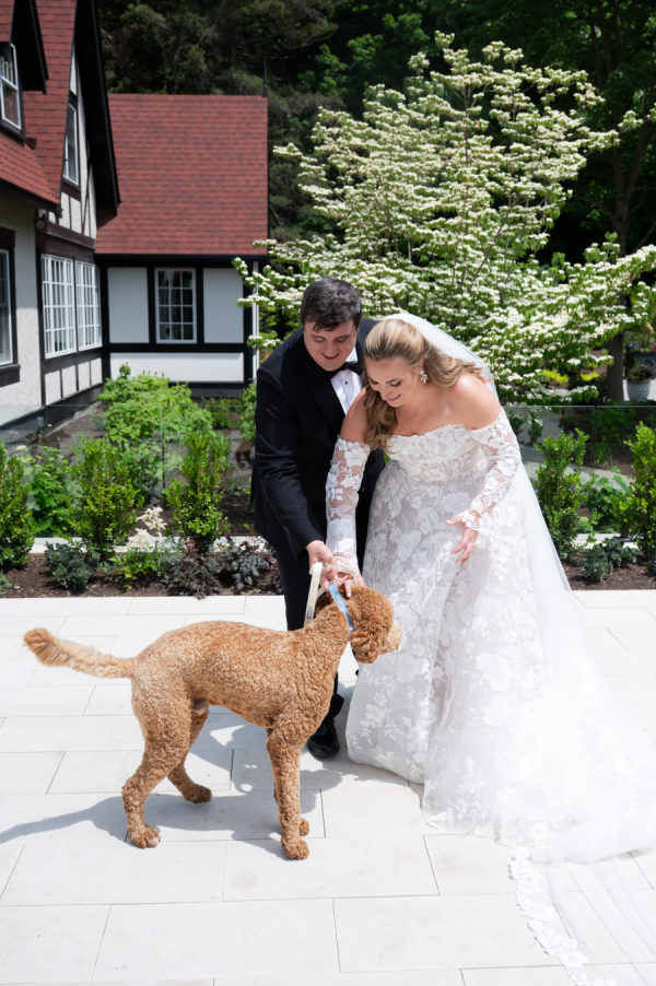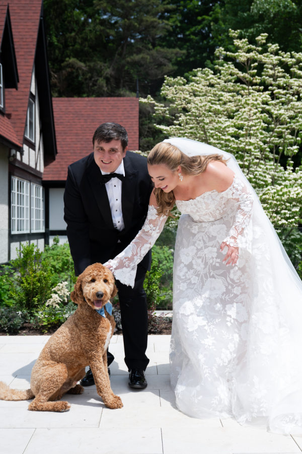 The goat cheese fritters and truffle shrimp skewer appetizers had all the guests grinning from ear to ear as they enjoyed cocktail hour on the patio of the club. The custom monogram bars served Chris and Brooks’ signature drinks. Each is named after the other, including their adorable dog, Ziggy. All three of the drinks could be made into a mocktail, which was a special treat for their guests. Dinner started with a kale Caesar salad and consisted of a juicy filet, wild-caught salmon, ora yummy vegetarian alternative. The Yukon potatoes were a crowd pleaser for sure and were paired with fresh asparagus.